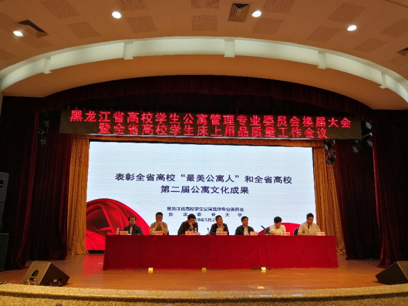 5月25日上午,由黑龍江省教育后勤管理協(xié)會、黑龍江省高等學(xué)校學(xué)生公寓管理專業(yè)委員會舉辦的黑龍江省高校學(xué)生公寓管理專業(yè)委員會換屆大會暨全省高校學(xué)生床上用品質(zhì)量工作會議在東北農(nóng)業(yè)大學(xué)召開。學(xué)生處副處長張樹啟、舍務(wù)管理科科長尚飛代表我校參加了會議。