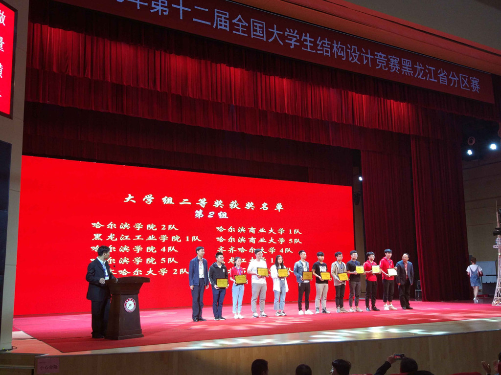 5月25-27日,土木工程領域頂級賽事“龍江建工”杯第十二屆全國大學生結(jié)構(gòu)設計競賽黑龍江分區(qū)賽在哈爾濱學院隆重舉行。來自哈爾濱工業(yè)大學、哈爾濱工程大學等省內(nèi)24所高校及省內(nèi)7所重點高中的114支代表隊,400余位師生參加了本次賽事。我校派出由建筑與土木工程學院土木工程專業(yè)教師王麗、呂春、張宇指導,15名學生組成的5支隊伍參賽。建筑與土木工程學院教學副院長張道明來到比賽現(xiàn)場指導,鼓舞學生士氣。最終,我校獲得一等獎1項,二等獎2項,團體二等獎1項。
