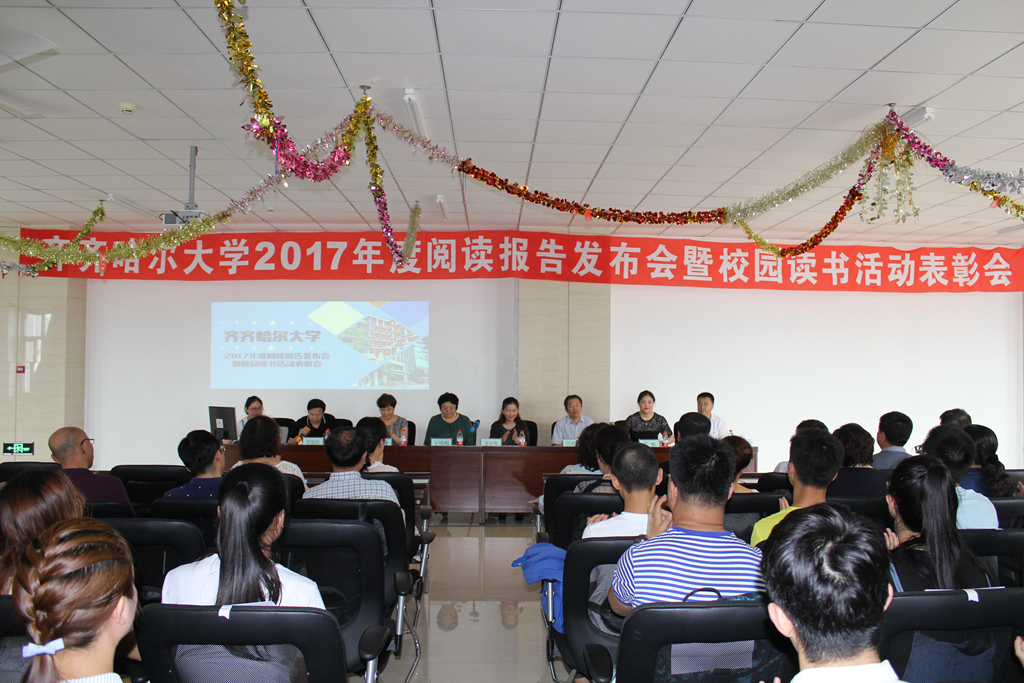 讀有溫度的書,遇見有趣的靈魂。7月11日上午,齊齊哈爾大學(xué)2017年度閱讀報(bào)告發(fā)布會(huì)暨校園讀書活動(dòng)表彰會(huì)在圖書館東區(qū)館8樓報(bào)告廳隆重舉行。校黨委副書記齊宏偉、副校長呂厚均出席了會(huì)議,宣傳統(tǒng)戰(zhàn)部部長王曉梅、校團(tuán)委書記蘇醒、圖書館黨委書記胥軍、館長宋波,以及研究生部、各學(xué)院主管學(xué)生工作的領(lǐng)導(dǎo)、教師代表、學(xué)生代表參加了會(huì)議。會(huì)議由圖書館副館長管振岐主持。