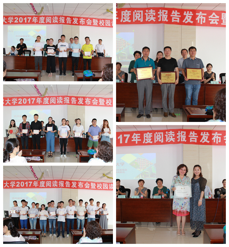 齊宏偉宣讀了2017年度齊齊哈爾大學(xué)閱讀活動(dòng)中表現(xiàn)優(yōu)異的學(xué)院、學(xué)生名單,并與參會(huì)領(lǐng)導(dǎo)一起為獲獎(jiǎng)單位、獲獎(jiǎng)?wù)哳C獎(jiǎng)。