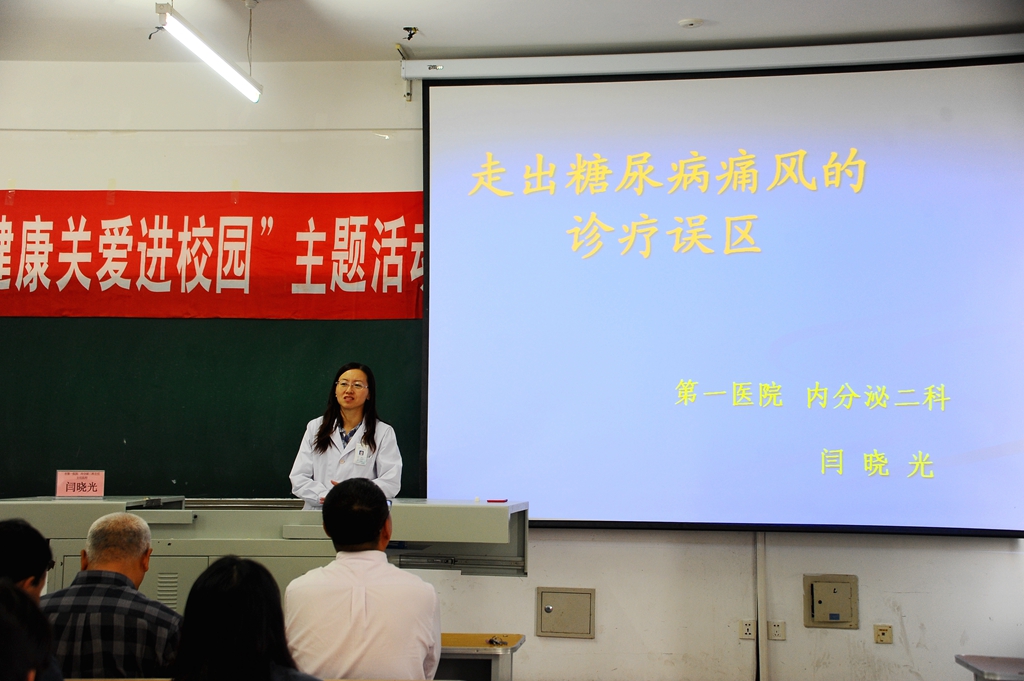 活動(dòng)中,第一醫(yī)院會(huì)診中心主任張萍作了題為《營(yíng)養(yǎng)與健康》的講座,第一醫(yī)院內(nèi)分泌二科主任閆曉光作了題為《走出糖尿病痛風(fēng)的診療誤區(qū)》的講座。