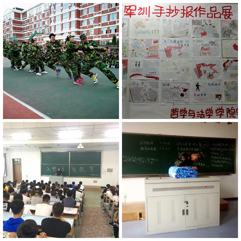 為了在新生心中深植愛黨愛國的堅定信念,營造積極向上的軍訓氛圍,9月6日晚18:00計算機與控制工程學院在西區(qū)籃球場舉辦了“唱響軍歌,釋放青春,我們風雨同行;磨礪意志,自律明德,我們壯志豪情”軍歌匯演。匯演不僅豐富了新生的軍訓生活,增強了團隊凝聚力,更激發(fā)了大家的愛國熱情;為了豐富新生軍訓期間的校園文化生活,增進各班學生之間的友誼,培養(yǎng)學生們的團隊協(xié)作能力,9月5日教育與傳媒學院在東區(qū)輪滑場舉辦新生拔河比賽。通過本次拔河比賽,加強了班級內部同學們的團結合作,培養(yǎng)了學生的集體榮譽感和積極向上的進取精神;為了普及軍事知識,進一步提升新生的國防知識水平,生命科學與農林學院邀請武裝部(保衛(wèi)處)范忠臣老師在中區(qū)文化宮為2018級新生上了一堂生動的軍事理論課,此次軍訓理論課不僅使新生們增強了國防觀念、國家安全意識,強化了愛國主義精神,同時也增加了同學們的民族自豪感和當代大學生的歷史使命感;通信與電子工程學院開展了書寫軍訓感言活動,參訓學生在經歷了嚴格的軍事科目訓練后紛紛在感言中表達了對未來大學生活的向往及對祖國軍人的由衷敬佩之情。