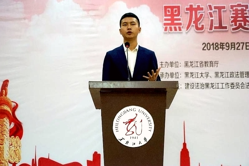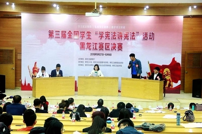 憲法學(xué)習(xí)宣傳是法治宣傳和高校學(xué)生思想政治教育的重要內(nèi)容。根據(jù)《全省高校法學(xué)專業(yè)大學(xué)生“學(xué)憲法講憲法”主題演講比賽實施方案》(黑法會字﹝2018﹞46號)《省教育廳關(guān)于開展第三屆全省學(xué)生“學(xué)憲法講憲法”活動的通知》(黑教法函﹝2018﹞240號)要求,9月28日,由黑龍江省教育廳主辦,黑龍江省政法管理干部學(xué)院、黑龍江省教育法治學(xué)會承辦,由建設(shè)法治黑龍江工作委員會法治宣傳教育組、黑龍江省法學(xué)會提供支持的第三屆“學(xué)憲法講憲法”主題演講比賽黑龍江賽區(qū)總決賽在黑龍江大學(xué)陽光講壇圓滿落下帷幕。我校哲學(xué)與法學(xué)學(xué)院法學(xué)162班奚寬豪同學(xué)經(jīng)學(xué)院遴選在校黨委宣傳統(tǒng)戰(zhàn)部、校團委的組織下參加了此次大賽并榮獲三等獎。