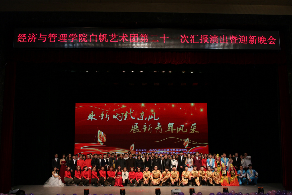 1998年10月,經(jīng)濟(jì)與管理學(xué)院白帆藝術(shù)團(tuán)成功舉辦了辦團(tuán)以來(lái)的第一次文藝匯演,至今已成功舉辦了21次專(zhuān)場(chǎng)匯報(bào)演出。作為學(xué)生群眾性社團(tuán)組織,白帆藝術(shù)團(tuán)自成立之日起就以“服務(wù)青年學(xué)生成長(zhǎng)成才”為辦團(tuán)初心,以打造“高雅文化”為辦團(tuán)宗旨,力求推出精品力作,有序?qū)崿F(xiàn)文化育人。近年來(lái),白帆藝術(shù)團(tuán)全體成員堅(jiān)持“不忘辦團(tuán)初心、青春攜手奮進(jìn)”的辦團(tuán)理念,積極活躍在校、院兩級(jí)的文化舞臺(tái)上。低俗不等于通俗、通俗不等于高雅,單純感官上的娛樂(lè)不等于精神上的真正快樂(lè)。近年來(lái),經(jīng)濟(jì)與管理學(xué)院白帆藝術(shù)團(tuán)深入貫徹全國(guó)全省高校思想政治工作會(huì)議精神,堅(jiān)持“以文化人、以文育人”,將滿(mǎn)足青年學(xué)生群體的崇高精神文化需求作為作品創(chuàng)作的出發(fā)點(diǎn),堅(jiān)持以“高雅文化”引領(lǐng)青年學(xué)生成長(zhǎng)成才,將中華優(yōu)秀傳統(tǒng)文化、革命文化、社會(huì)主義先進(jìn)文化等元素融入節(jié)目創(chuàng)作,充分發(fā)揮了高雅文化的育人功能,在服務(wù)青年學(xué)生成長(zhǎng)成才方面做出了重要貢獻(xiàn)。