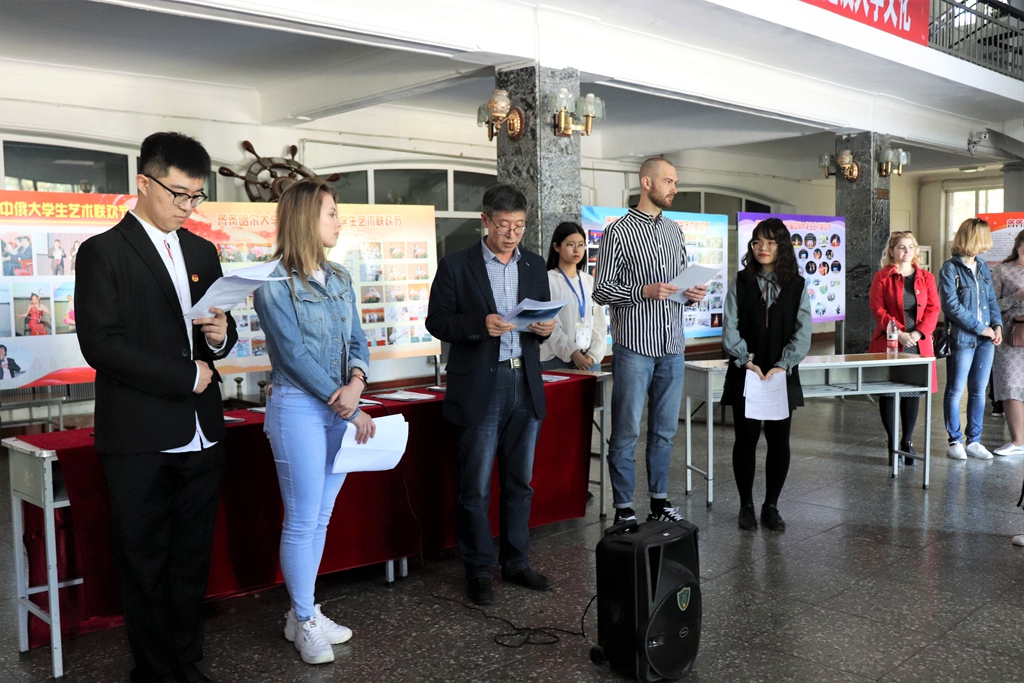 發(fā)布日期:2019-05-26 點(diǎn)擊量:5月22日下午,學(xué)校在文化宮大廳舉辦了“我們走過(guò)的十年”征文活動(dòng)作品展。副校長(zhǎng)張樹(shù)軍出席活動(dòng),來(lái)自俄羅斯遠(yuǎn)東國(guó)立藝術(shù)學(xué)院、后貝加爾國(guó)立大學(xué)、伊爾庫(kù)茨克國(guó)立大學(xué)的師生代表以及國(guó)際教育學(xué)院師生參加了活動(dòng)。