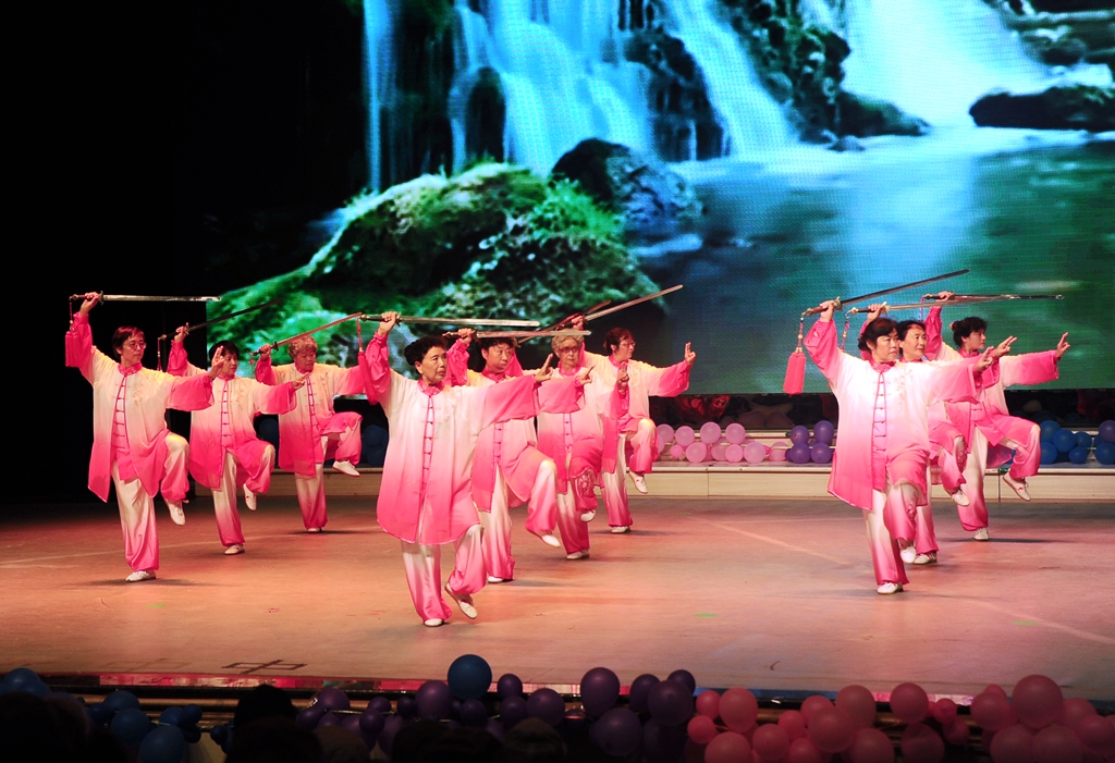 在開幕式上,我校離退休老同志表演了太極拳、太極劍、太極扇、全民健身操、舞蹈《大中國》等精彩的文藝節(jié)目,離退休工作處副處長杜金彪、田立玲分別帶來了歌曲《最美的歌兒唱給媽媽》《今天是你的生日—中國》,贏得了廣大老同志們的陣陣掌聲,開幕式最后在與會(huì)領(lǐng)導(dǎo)和全體演職人員合唱的歌曲《我和我的祖國》中落下帷幕。