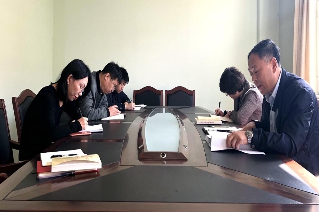 原原本本學(xué)原著,不折不扣抓落實。9月16日上午,組織部(機(jī)關(guān)黨委)黨支部在中主401會議室啟動了主題教育集中學(xué)習(xí)研討。黨支部書記趙振華帶領(lǐng)支部成員一同學(xué)習(xí)了《習(xí)近平總書記在“不忘初心、牢記使命”主題教育工作會議上的講話》《加強(qiáng)黨的政治建設(shè)——習(xí)近平同志主持中共十九屆中央政治局第六次集體學(xué)習(xí)時的講話》《政治建設(shè)是黨的根本性建設(shè)》等內(nèi)容,趙振華說,加強(qiáng)理論武裝是做好組織工作的重要保證。他希望大家以高標(biāo)準(zhǔn)、嚴(yán)要求來嚴(yán)格要求自己,按照學(xué)校黨委統(tǒng)一部署,落實落靠主題教育各項工作,確保主題教育取得實實在在的成效。