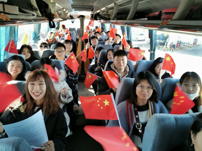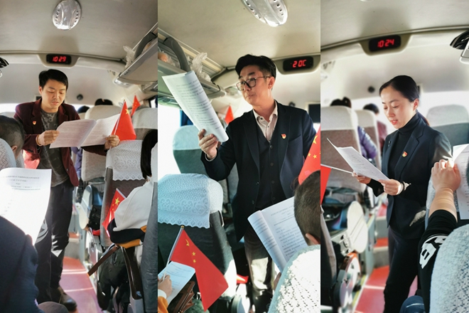 集中學(xué)習(xí)夯實(shí)理論底蘊(yùn)。9月14日10:00,在齊齊哈爾開往鶴崗的大客車上,臨時(shí)黨支部組織師生黨員、入黨積極分子認(rèn)真學(xué)習(xí)習(xí)近平總書記重要講話精神。臨時(shí)黨支部書記陳曦澤、副書記李美虹、宣傳委員鄧重博分別領(lǐng)學(xué)了習(xí)近平總書記在慶祝中華人民共和國成立70周年大會上、在國家勛章和國家榮譽(yù)稱號頒授儀式上、在慶祝中華人民共和國成立70周年招待會上的3篇重要講話。