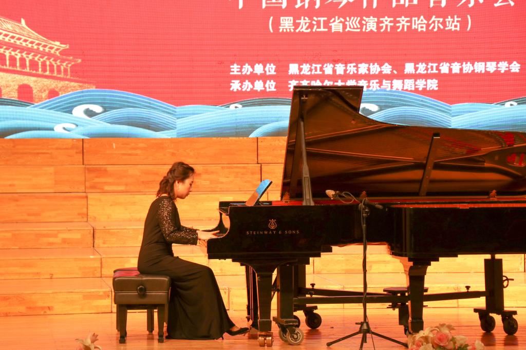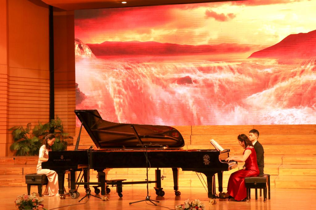 音樂會在張磊老師獨奏的鋼琴曲《向陽花》中拉開了帷幕;宋亦瑩老師傾情彈奏的《C大調(diào)前奏曲 》是黃安倫《12首前奏曲》中最為著名的一曲,激昂的節(jié)奏傳遞出在苦難中不屈不撓的精神品格;佳木斯大學曹文瀚老師演奏的《瀏陽河》由王建中根據(jù)湖南民歌改編而成,具有鮮明的中國特色,贏得現(xiàn)場聽眾的熱烈掌聲;鋼琴曲《卜奎印象》是音樂與舞蹈學院趙云老師根據(jù)齊齊哈爾城市文化所創(chuàng)作的鋼琴組曲之一,這首曲子采用長短節(jié)奏、多連音音型、模仿民族樂器音色等多種創(chuàng)作手法,完美表達了對鶴城文化的禮贊;烏克蘭留學歸來的白斌老師演奏的當代作曲家張朝的作品《哈尼情歌》,為音樂會增添了別樣的民族風情;牡丹江師范學院馬玉萍老師演奏的由蔣泓改編的《我的祖國》炫技完美,自如灑脫,得到全場熱烈掌聲;由音樂與舞蹈學院程磊、陳曉鵬兩位老師共同演繹的經(jīng)典歌曲《愛情》,旋律優(yōu)美、歌聲悠揚,將鋼琴與聲樂完美結(jié)合起來,贏得了觀眾的喝彩;由于洋、李鴻姝演奏的《陽光照耀著塔什庫爾干》,活潑歡快、幽默詼諧,用鋼琴和二胡展現(xiàn)出了西部邊疆的異族風情;音樂會上,哈爾濱音樂學院王瑛、楊欣兩位老師共同演奏了《快樂的女戰(zhàn)士》《茉莉花》《康定情歌》等經(jīng)典樂曲,并合作演奏了雙鋼琴協(xié)奏曲《黃河》,默契的配合讓現(xiàn)場觀眾賞心悅目;哈爾濱師范大學曹越、李姍姍兩位老師演奏的《彩云追月》節(jié)奏歡快,帶給現(xiàn)場觀眾美的享受;哈爾濱師范大學周行、徐琳兩位老師在音樂會上精彩呈現(xiàn)了春晚經(jīng)典曲目《春節(jié)序曲》,將音樂會推上了高潮。最后,音樂會在劉冬欣、李鴻姝兩位老師默契演奏的雙鋼琴協(xié)奏曲《保衛(wèi)黃河》樂曲中拉下帷幕。