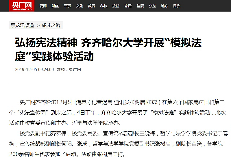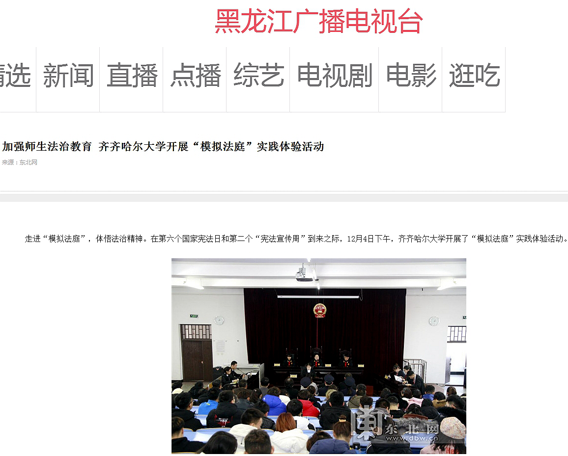 2.黑龍江廣播電視臺:加強(qiáng)師生法治教育齊齊哈爾大學(xué)開展“模擬法庭”實踐體驗活動