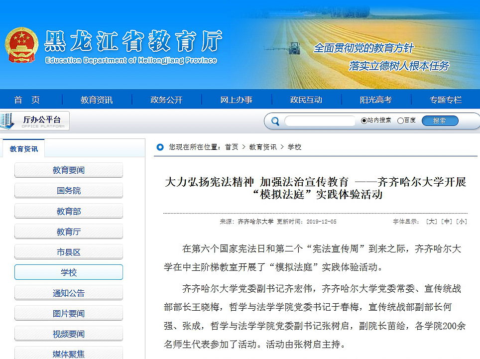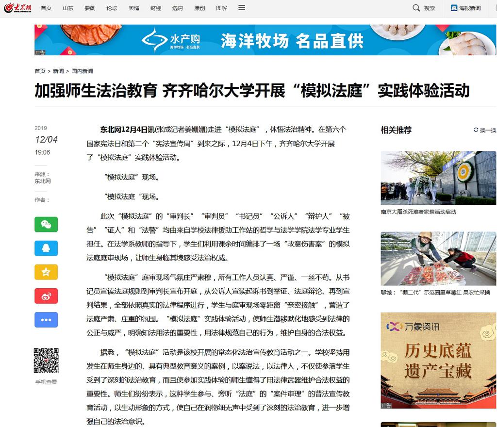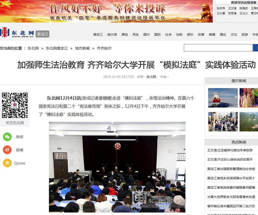 1.東北網(wǎng):加強(qiáng)師生法治教育齊齊哈爾大學(xué)開展“模擬法庭”實踐體驗活動