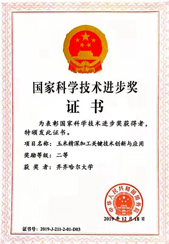 1月10日,國(guó)家科學(xué)技術(shù)獎(jiǎng)勵(lì)大會(huì)在人民大會(huì)堂隆重舉行。由吉林農(nóng)業(yè)大學(xué)作為牽頭單位、我校為第三參加單位,我校食品科學(xué)與工程學(xué)科一級(jí)學(xué)科帶頭人、龍江學(xué)者特聘教授、博士生導(dǎo)師劉曉蘭教授為第五獲獎(jiǎng)人的科技成果“玉米精深加工關(guān)鍵技術(shù)創(chuàng)新與應(yīng)用”榮獲2019年度國(guó)家科技進(jìn)步二等獎(jiǎng)。