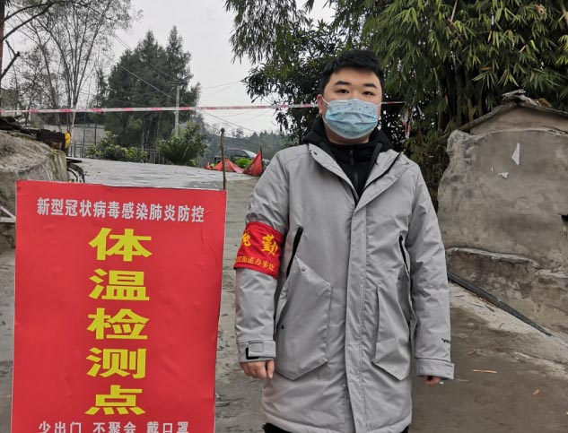 伏桃是生命科學(xué)與農(nóng)林學(xué)院生物182班的入黨積極分子,家住四川省南充市南部縣曉霞村。2020年的春節(jié)假期他過得格外忙碌而充實(shí)。大年初一,伏桃就在黨員姑父的幫助下,報(bào)名成為了抗擊疫情志愿者,跟隨濱江辦事處的工作人員在南部客運(yùn)站,對(duì)下車人員進(jìn)行體溫檢查,對(duì)體溫異常人員進(jìn)行登記,并及時(shí)上報(bào)給客運(yùn)站負(fù)責(zé)人。隨著疫情的發(fā)展,大年初四,伏桃的家鄉(xiāng)曉霞村采取了封村措施,他便開始在村口對(duì)過往車輛和行人進(jìn)行登記、測量體溫,不讓任何一個(gè)有異常的人員進(jìn)入村子成為了他的工作宗旨?!拔蚁嘈胖灰總€(gè)人都肯為防控疫情出力,我們就一定能很快打贏這場疫情阻擊戰(zhàn)?!狈艺f。