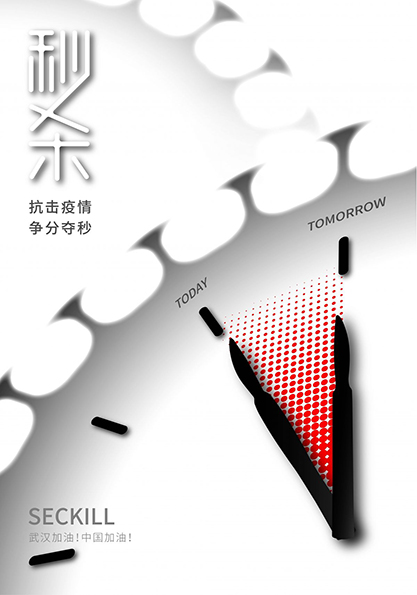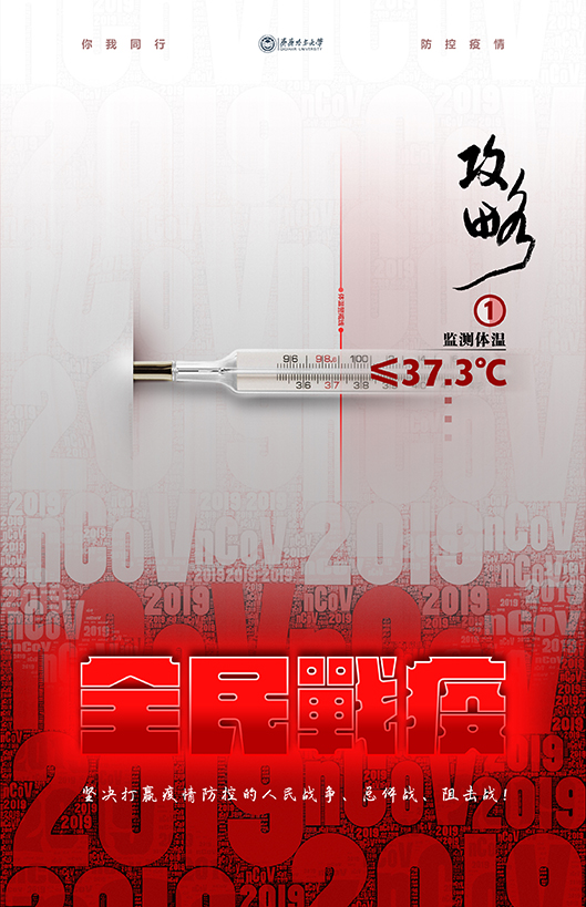 設(shè)計(jì)簡介:以小面積的紅色與大面積的灰白色做對比,2019nCoV作為背景基礎(chǔ)圖形要素,揭示了目前防疫工作的嚴(yán)峻性。招貼以“全民戰(zhàn)疫”為系列設(shè)計(jì);告知普通民眾在居家隔離期間應(yīng)該重視的日常問題。這一幅為測體溫,展現(xiàn)了普通民眾能從小處做起,管理好個人和家庭的同時,也同樣為全國人民戰(zhàn)勝疫情做出了自己的貢獻(xiàn)!(感謝同事長春的助力,“攻略”二字升華了設(shè)計(jì)主題)