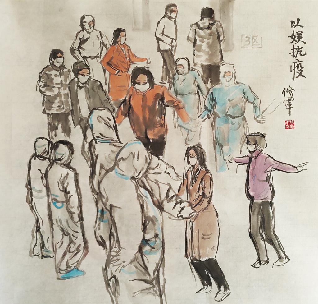 《方艙醫(yī)院以娛抗疫》中國畫 張修軍