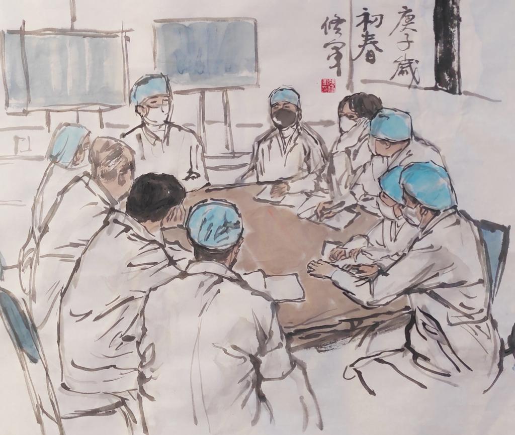創(chuàng)作簡介:為了更好的治療患者,醫(yī)護(hù)工作者們在緊急研究治療方案,他們夜以繼日,黑白奮戰(zhàn)。這些戰(zhàn)疫勇士們有的是外地的醫(yī)護(hù)人員,有的20幾天不回家,他們唯一的目標(biāo)是醫(yī)好病患。點(diǎn)贊無私奉獻(xiàn)的醫(yī)護(hù)人員!