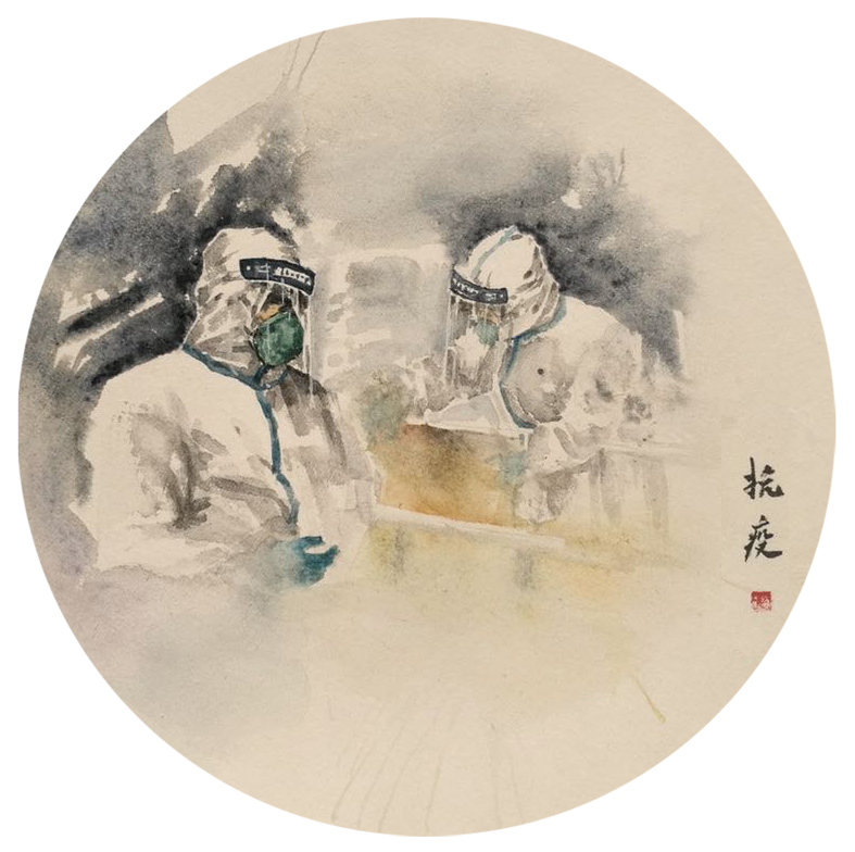 《抗疫》中國畫 李欣悅