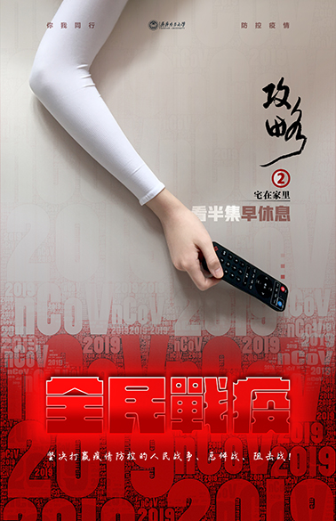 設(shè)計說明:以小面積的紅色與大面積的灰白色做對比,2019nCoV作為背景基礎(chǔ)圖形要素,揭示了目前防疫工作的嚴峻性。海報以“全民戰(zhàn)疫”為系列設(shè)計;告知普通民眾在居家隔離期間應(yīng)該重視的日常問題。這幅為宅在家里,展現(xiàn)了普通民眾能從小處做起,管理好個人和家庭的同時,也同樣為全國人民戰(zhàn)勝疫情做出了自己的貢獻?。ǜ兄x女兒手模級別的助力,就是太瘦了)