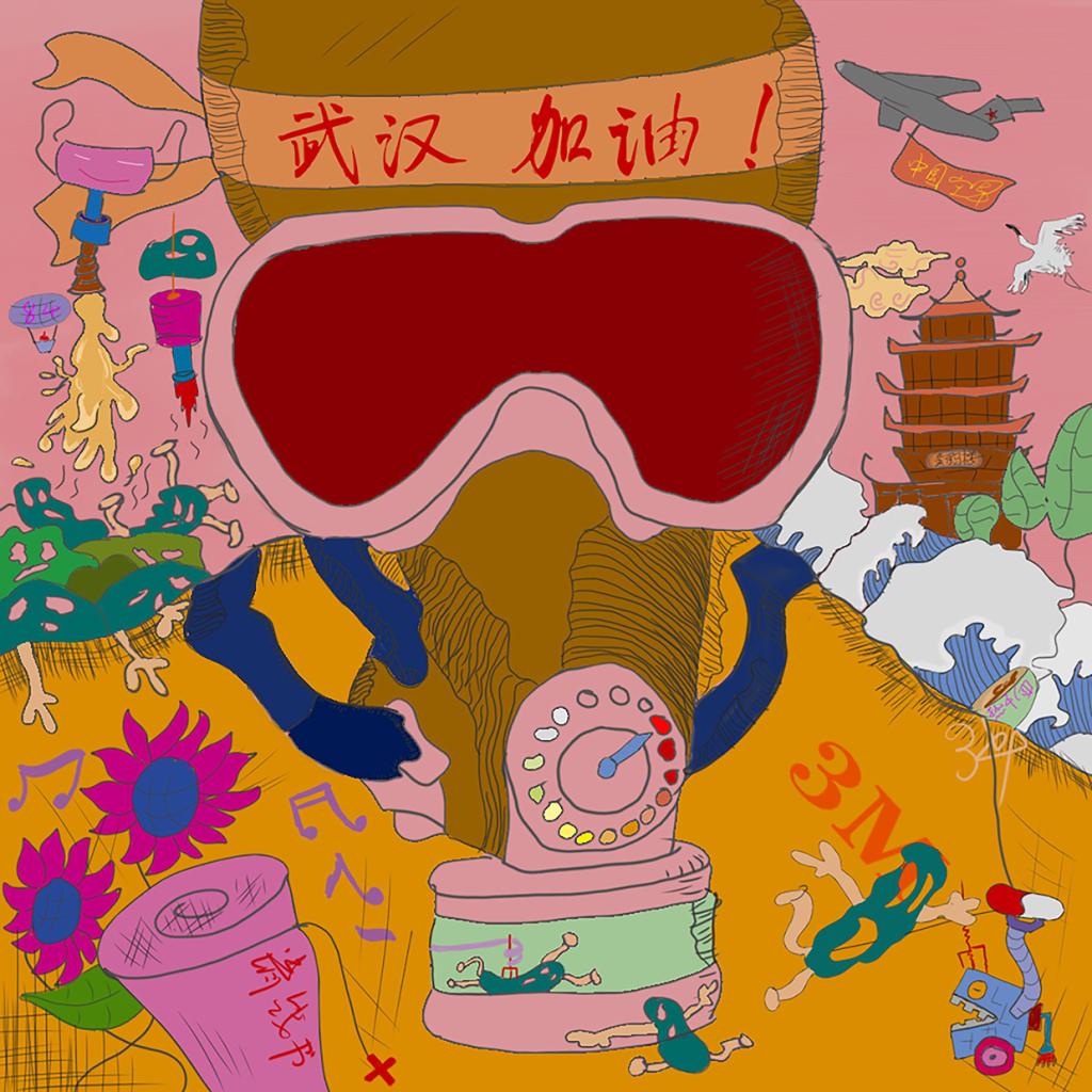 設(shè)計說明:此作品以白衣天使、黃鶴樓、武漢櫻花為元素向抗疫在一線的戰(zhàn)斗者致敬。你們不是孤軍奮戰(zhàn),中國14億人民和你們在一起,武漢的櫻花盛開,我們終將戰(zhàn)勝疫情,我們等你回家!