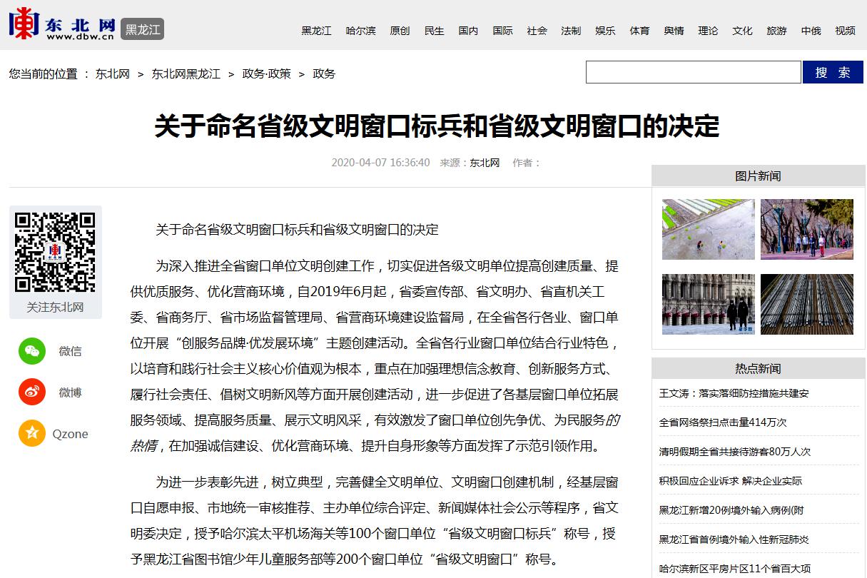 近日,黑龍江省文明委下發(fā)了《關(guān)于命名省級(jí)文明窗口標(biāo)兵和省級(jí)文明窗口的決定》,我校學(xué)生工作部(學(xué)生處)學(xué)生資助管理中心在全省“創(chuàng)服務(wù)品牌·優(yōu)發(fā)展環(huán)境”主題創(chuàng)建活動(dòng)中榮獲了“省級(jí)文明窗口”稱號(hào)。這是我校文明單位創(chuàng)建工作取得的又一個(gè)豐碩成果!