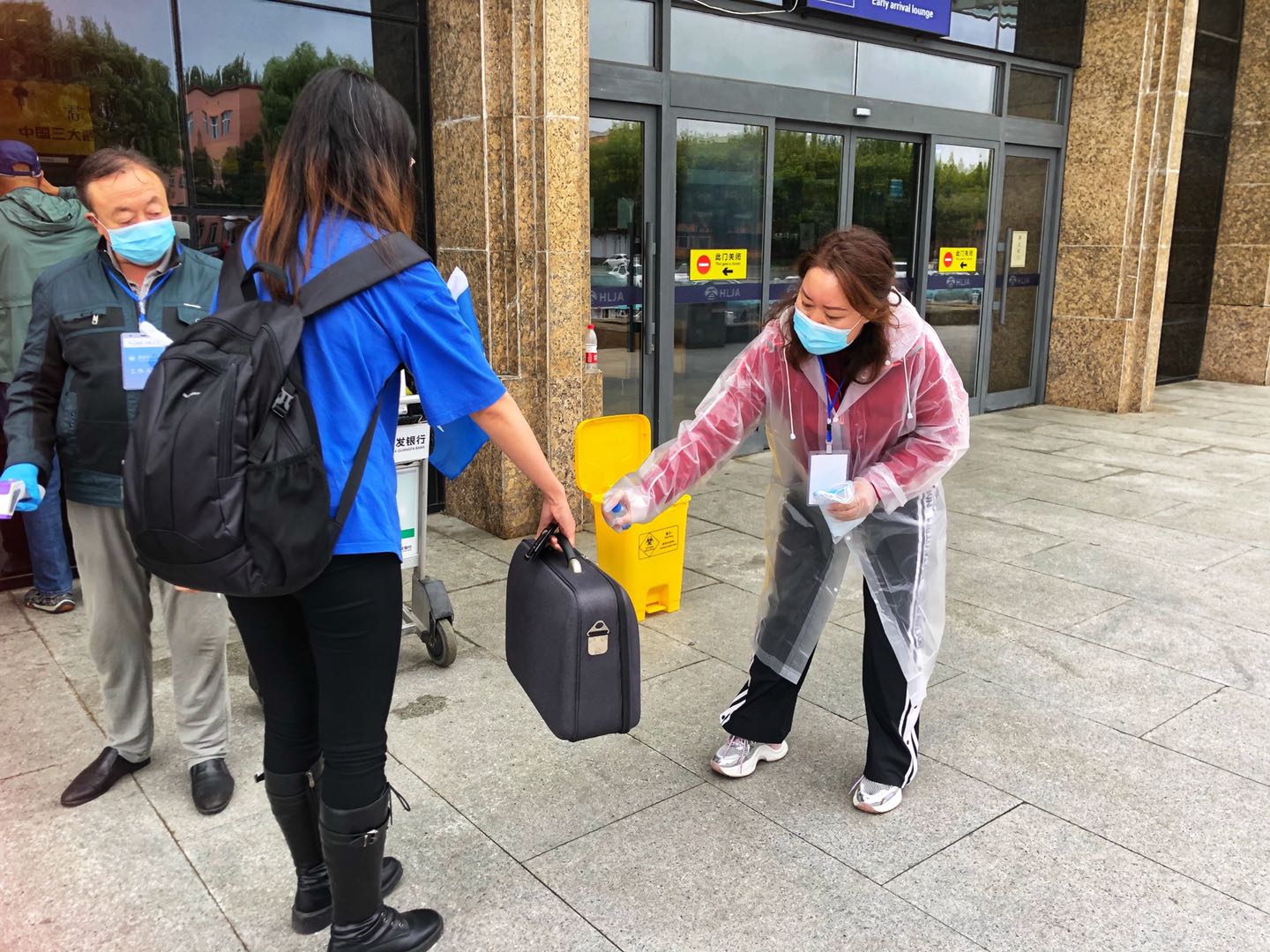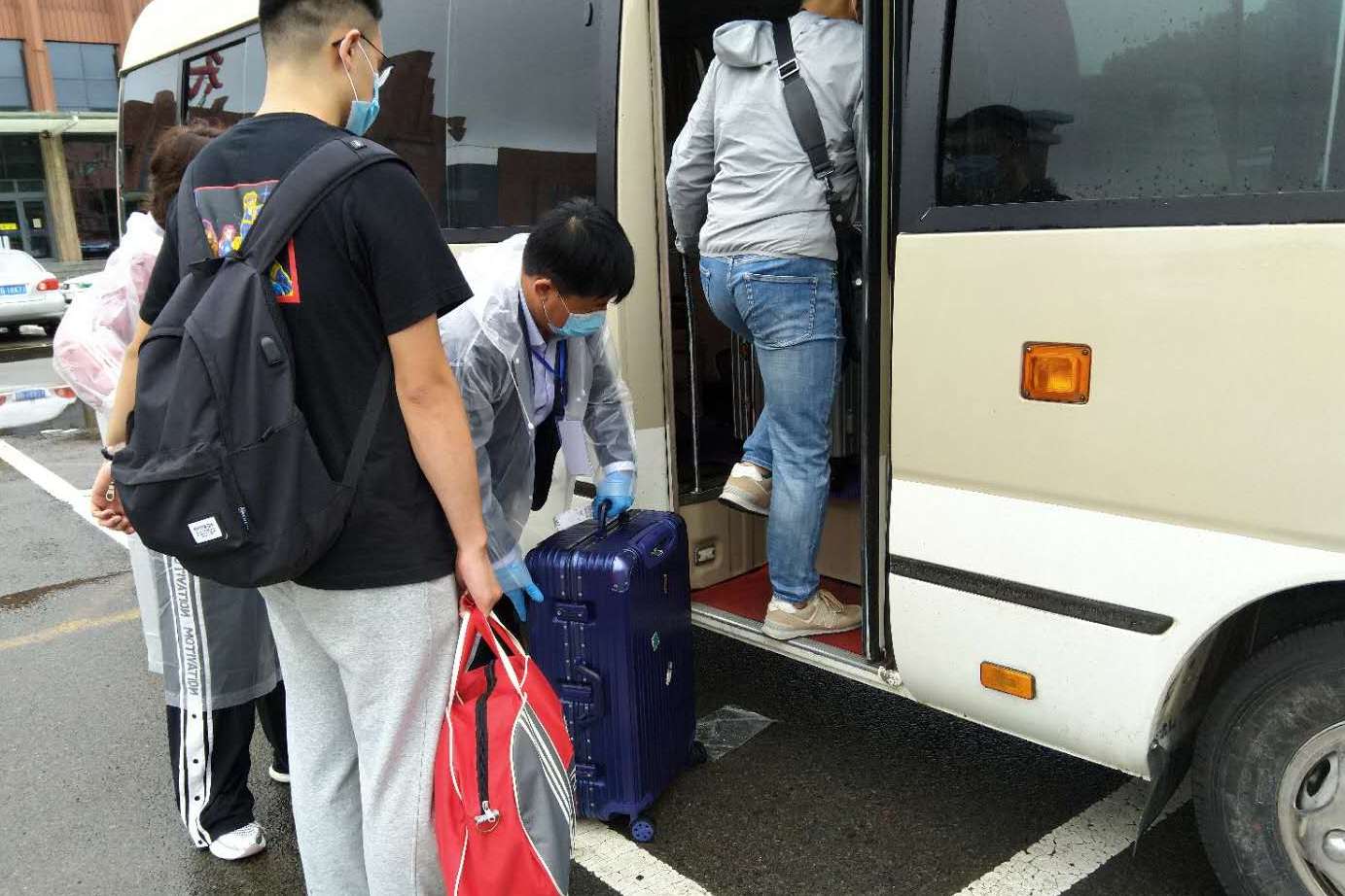 黨旗高揚(yáng),引領(lǐng)前進(jìn)方向;殷殷囑托,化為不竭動力。機(jī)電工程學(xué)院機(jī)械173班的張乘翥,家住內(nèi)蒙古赤峰市,是首批最早返校的學(xué)生,他感慨地說:“一下車接站老師就給我披上了雨衣,感覺很溫暖。希望其他返校同學(xué)都能遵守學(xué)校規(guī)定,做好自我防護(hù),服從管理分配,保障自身安全?!薄敖K于回到環(huán)湖校園,感到很開心。早上天剛蒙蒙亮,火車就到站了,老師已經(jīng)早早等候接站,心里很感動。今后我要在校園里更加努力學(xué)習(xí),做正能量的堅守者,樂觀積極地應(yīng)對疫情,嚴(yán)格做好自我防護(hù),與老師同學(xué)一起努力守護(hù)校園一方凈土?!笔称放c生物工程學(xué)院返校研究生張以超說。