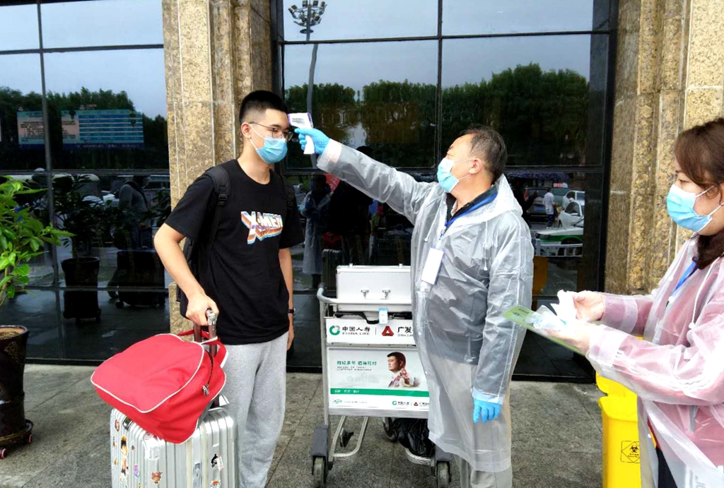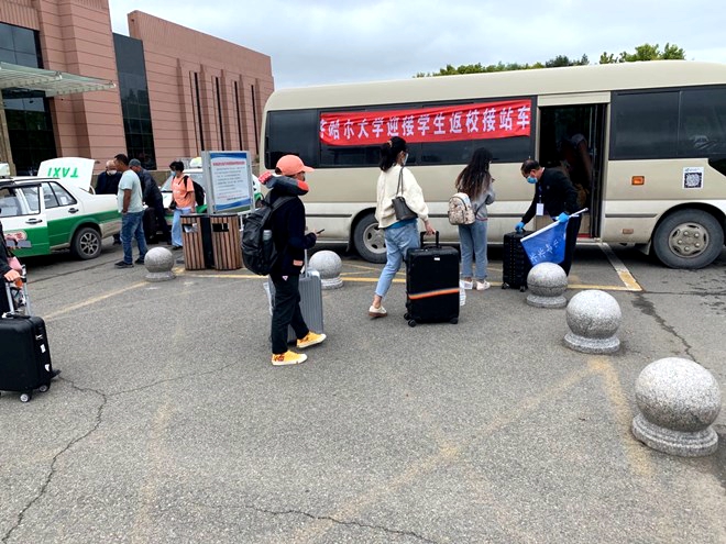 沖鋒在前,當(dāng)好“服務(wù)員”。“歡迎回家!”“箱子沉,我來(lái)幫你拿。”在齊齊哈爾民用機(jī)場(chǎng),剛下飛機(jī)的返校學(xué)生還沒有感受到秋雨的寒涼,就感受到了學(xué)校對(duì)返校學(xué)生身心健康的關(guān)心重視與濃情關(guān)懷。為做好機(jī)場(chǎng)接機(jī)工作,機(jī)關(guān)黨委對(duì)齊市機(jī)場(chǎng)返校的學(xué)生到站時(shí)間、航班班次和本人聯(lián)系方式等,與各學(xué)院進(jìn)行了進(jìn)一步核對(duì),做到精準(zhǔn)服務(wù),確保不漏接一個(gè)學(xué)生。在機(jī)場(chǎng),黨員干部志愿者和校醫(yī)一起為學(xué)生測(cè)量體溫、進(jìn)行消毒、更換口罩,核對(duì)學(xué)生身份信息和完美校園掃碼信息,保證學(xué)生安全返回學(xué)校。