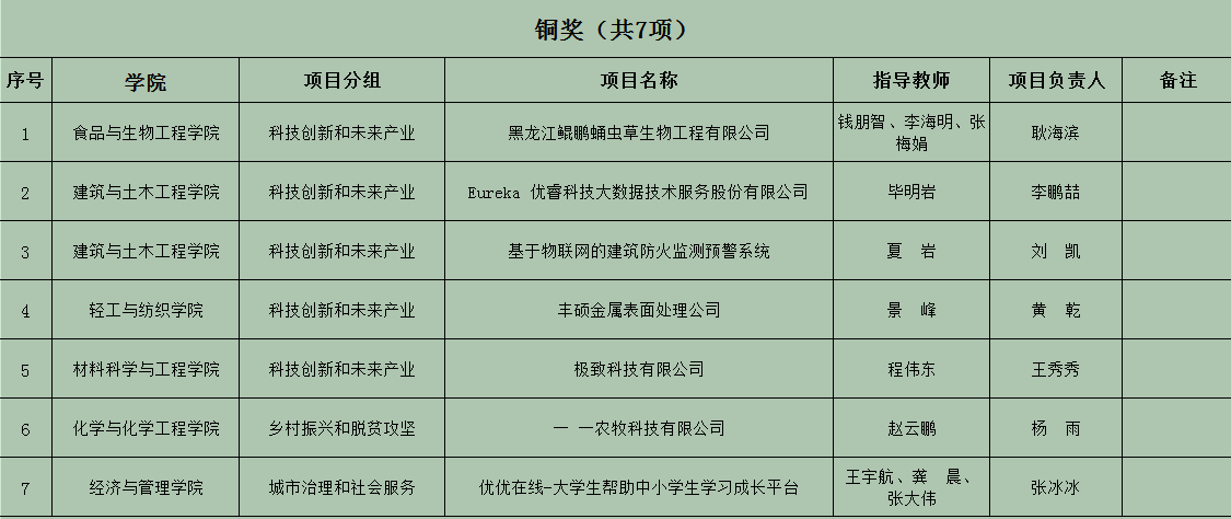 8月23日,由團省委、省教育廳、省科協(xié)、省學聯(lián)聯(lián)合主辦的第十二屆工銀融e聯(lián)“挑戰(zhàn)杯”黑龍江省大學生創(chuàng)業(yè)計劃競賽終審決賽在哈爾濱工程大學啟航活動中心隆重舉行,全省35所高校選送的209件創(chuàng)業(yè)項目作品參賽。8月31日,競賽結(jié)果公布,我校有13項作品獲獎,其中金獎2項、銀獎4項、銅獎7項,金獎作品中有1項入圍國賽。
