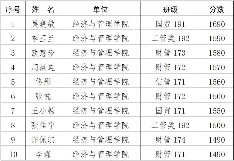 各黨委、直屬黨支部積極動(dòng)員組織師生參加全民閱讀線上知識(shí)競(jìng)賽活動(dòng),參加活動(dòng)的師生近萬人。在此次活動(dòng)中,教工取得的最好成績(jī)?yōu)?700分(經(jīng)濟(jì)與管理學(xué)院孫智高),學(xué)生取得的最好成績(jī)?yōu)?690分(經(jīng)濟(jì)與管理學(xué)院國(guó)貿(mào)191班吳曉敏)。學(xué)校黨委決定對(duì)取得知識(shí)競(jìng)賽前10名優(yōu)秀成績(jī)的師生進(jìn)行表彰獎(jiǎng)勵(lì)。
