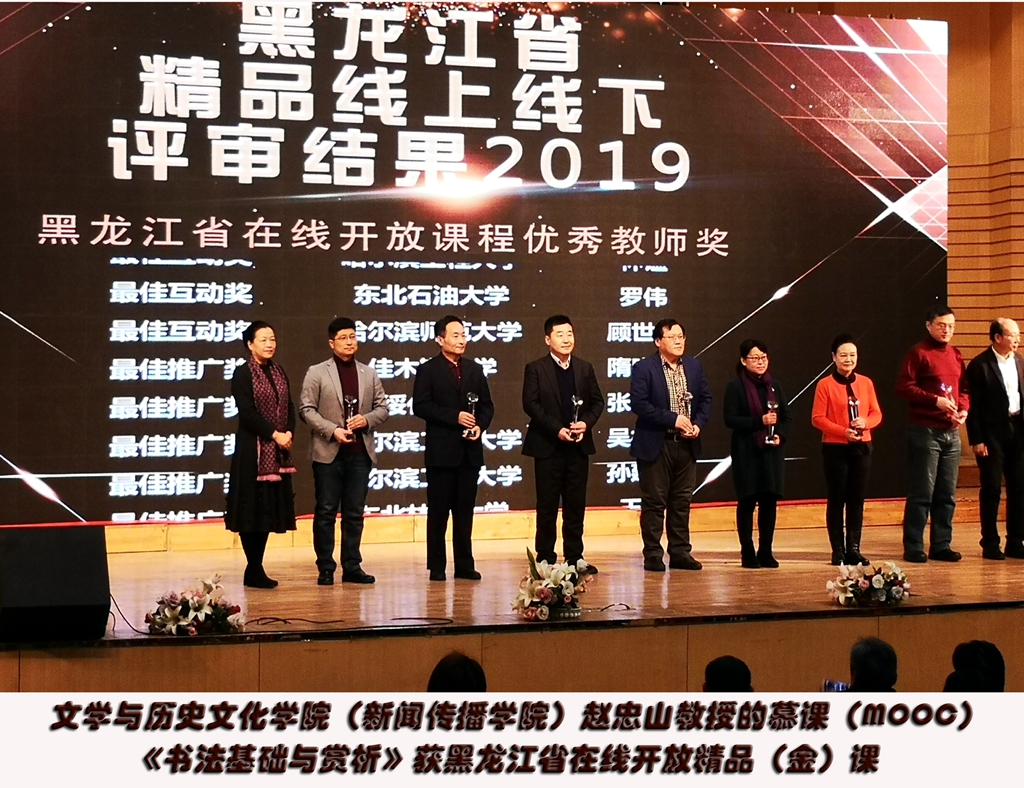 作為我校青年教師培訓(xùn)專家,趙忠山教授本年度為全校青年教師集中培訓(xùn)達(dá)4次。疫情期間,為弘揚(yáng)主旋律,振奮精神,謳歌抗擊疫情的時(shí)代精神和力量,他在假期籌辦了學(xué)院抗疫書畫展,產(chǎn)生了很好的社會(huì)反響。8月份,趙忠山教授又為全校參加省青年教師教學(xué)大賽的青年教師進(jìn)行精心輔導(dǎo)。他自建的我校首批慕課(MOOC)《書法基礎(chǔ)與賞析》,上線以來(lái)受到全國(guó)各高校的歡迎,截止目前已選用的高校達(dá)115所,選課人次已達(dá)2.2萬(wàn),師生互動(dòng)達(dá)8.28萬(wàn)次。該課程本年度獲評(píng)省級(jí)線上精品課(金課),他本人獲得了黑龍江省線上教學(xué)優(yōu)秀教師獎(jiǎng)。專業(yè)基礎(chǔ)課《寫作學(xué)》連續(xù)獲齊齊哈爾大學(xué)精品課程稱號(hào),多次獲得校級(jí)教學(xué)優(yōu)質(zhì)獎(jiǎng)。