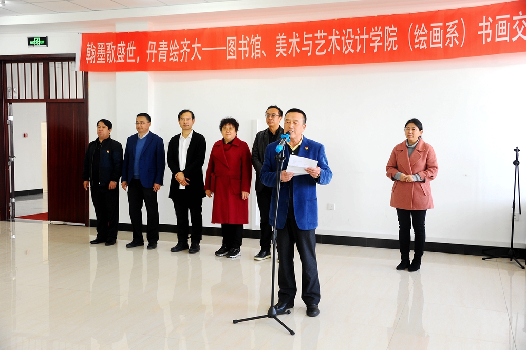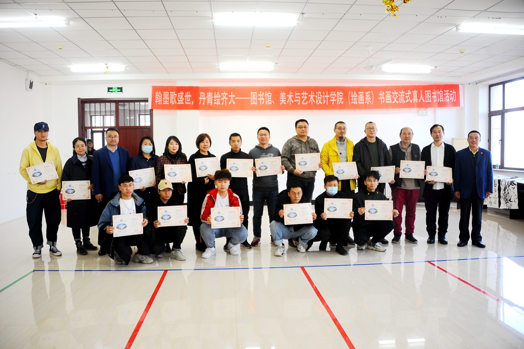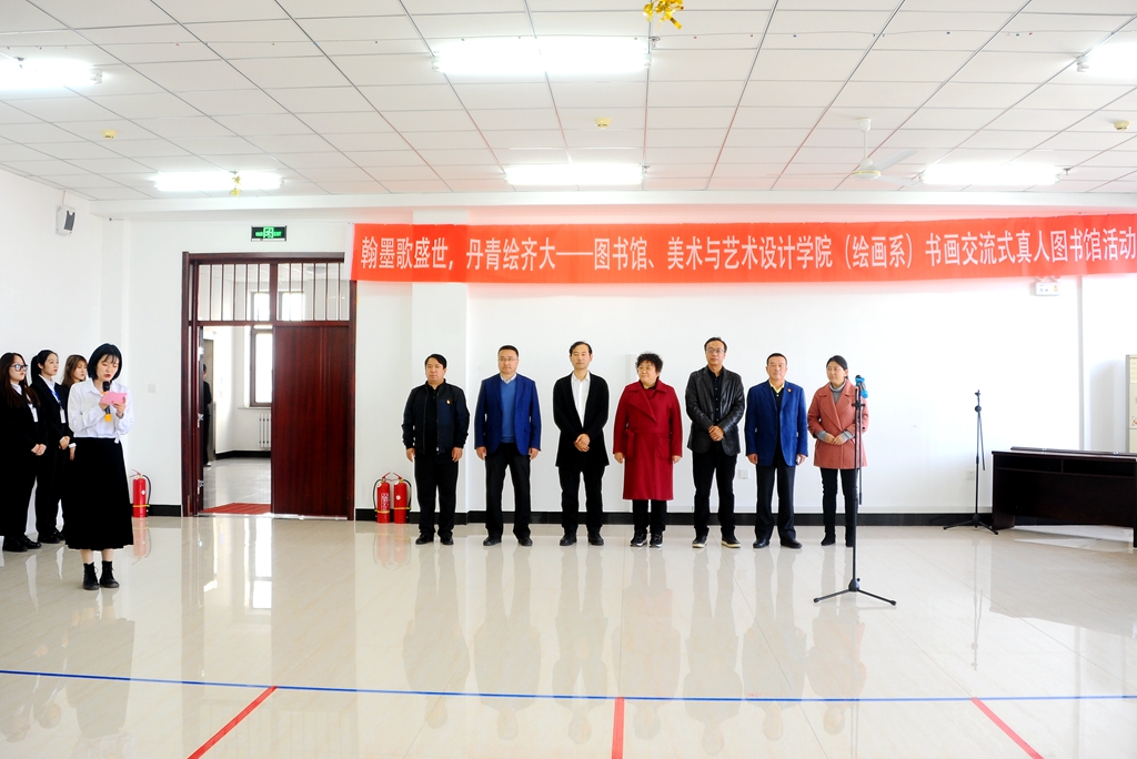 發(fā)布日期:2020-10-22 點擊量:10月21日下午,“翰墨歌盛世,丹青繪齊大——書畫交流式真人圖書館”活動在東區(qū)圖書館八樓報告廳舉辦,本次活動由校黨委宣傳部、校團委、校圖書館與美術(shù)與藝術(shù)設(shè)計學(xué)院(繪畫系)共同舉辦,校圖書管理委員會、拾光破曉微劇社協(xié)辦。校黨委常委、宣傳部長王曉梅,美術(shù)與藝術(shù)設(shè)計學(xué)院黨委書記周永富、院長范鐵明,校團委副書記馬小華,圖書館黨委書記胥軍、館長尹鷗、副館長岳景艷,美術(shù)與藝術(shù)設(shè)計學(xué)院繪畫系系主任申元東、繪畫系各教研室負責(zé)人以及相關(guān)教師和學(xué)生代表參加了活動。