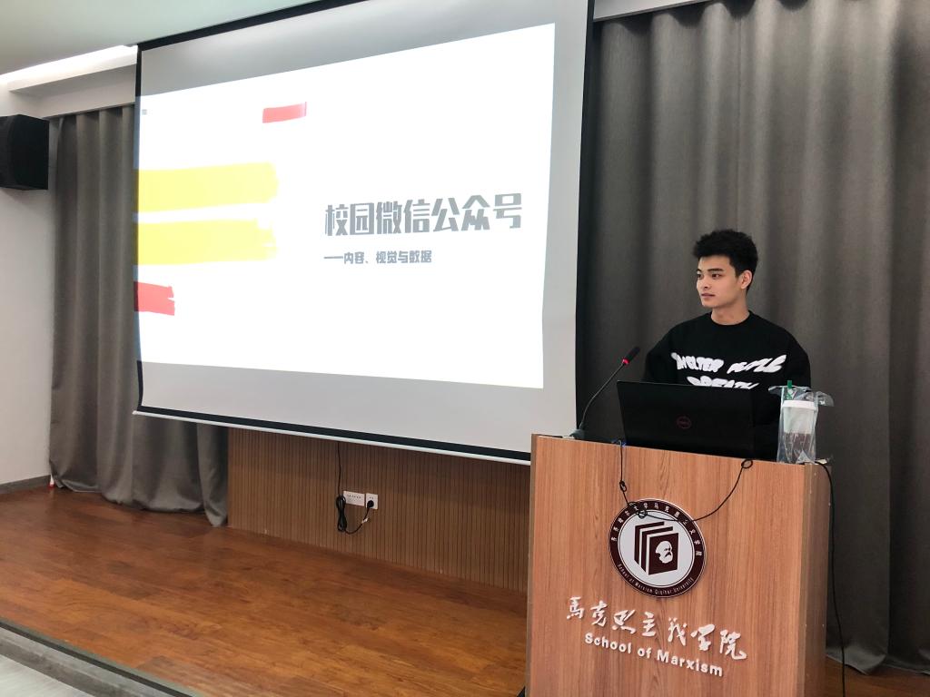 隨著自媒體時(shí)代的到來(lái),使用微信、閱讀公眾號(hào)已經(jīng)成為我們工作生活中獲取信息的重要來(lái)源。11月18日16:00,18級(jí)播音主持專業(yè)劉露文同學(xué)受學(xué)校黨委宣傳部的邀請(qǐng),在馬克思主義學(xué)院二樓多媒體會(huì)議室,為負(fù)責(zé)校內(nèi)新媒體矩陣運(yùn)營(yíng)師生做了一場(chǎng)《如何運(yùn)營(yíng)校園微信公眾號(hào)》的專題講座。