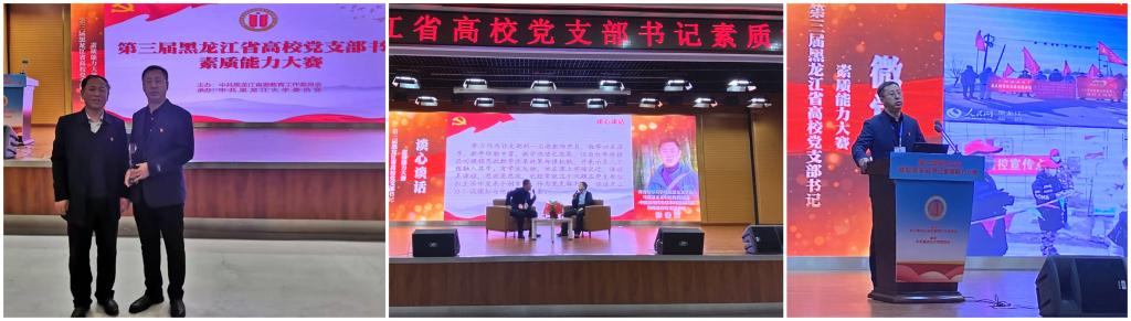 11月18日至20日,由黑龍江省委教育工委主辦的第三屆黑龍江省高校黨支部書記素質能力大賽在黑龍江大學舉行。我校馬克思主義學院馬克思主義中國化教研部-中國近現代史基本問題教研部教師聯合黨支部書記張春波副教授代表學校參賽,最終以總分第四的成績榮獲二等獎。省委教育工委副書記王震、省基層辦副主任孫世君、黑龍江大學校長付宏剛、黨委副書記蔣晶潔出席大賽,并為獲獎選手頒獎。我校黨委組織部副部長趙振華現場觀摩、助力賽事,各二級黨組織書記、基層黨支部書記和師生黨員通過網絡直播的方式同步觀看了大賽決賽。