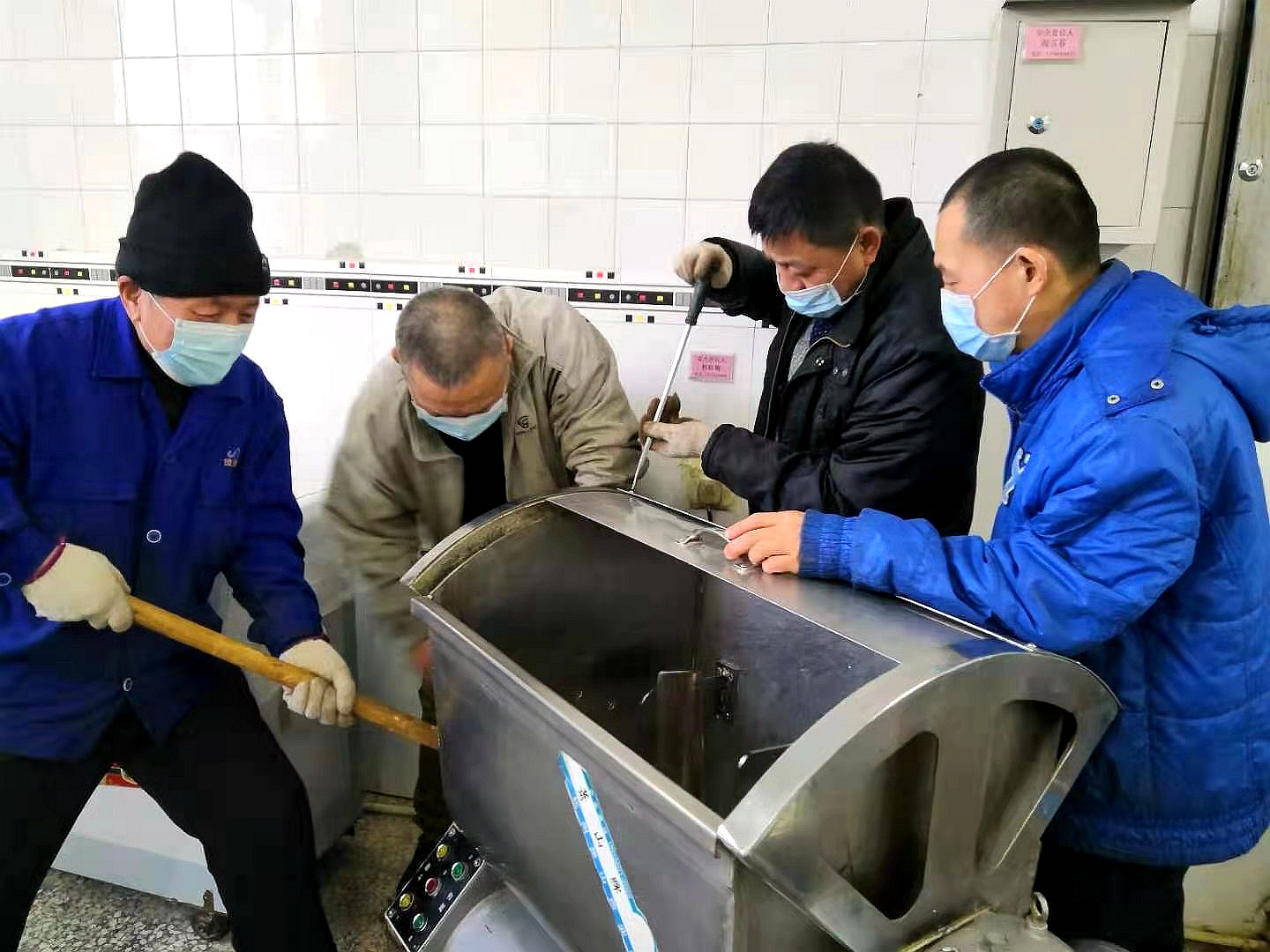 假期是學(xué)校各種設(shè)施設(shè)備維修保養(yǎng)的“黃金時(shí)間”,學(xué)?;锸晨茷楸WC各食堂在開學(xué)后能夠更好地為師生員工服務(wù),伙食科科長(zhǎng)王春明組織各食堂炊事員利用假期對(duì)食堂的機(jī)械設(shè)備設(shè)施進(jìn)行了徹底維修。機(jī)械維修專業(yè)性強(qiáng),在維修中遇到困難,大家就一起反復(fù)研究,經(jīng)過一個(gè)多月的共同努力,伙食科更換了22臺(tái)引風(fēng)機(jī)軸承,修理了饅頭機(jī)等機(jī)械設(shè)備100余臺(tái),修理各類推車等設(shè)施130余個(gè),疏通了水池下水管且部分進(jìn)行了重新安裝,維修加固、更換了部分蒸汽管道和閥門,為新學(xué)期師生的餐飲服務(wù)保障工作做好了充分的準(zhǔn)備。