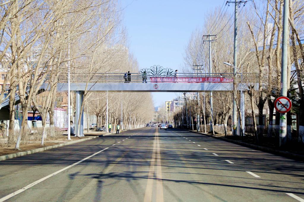 齊齊哈爾大學(xué)校園橫穿林藝街部分沒有過街天橋,師生穿行兩個校區(qū)之間須步行過馬路,如今師生可經(jīng)橋而過,安全得以保障。