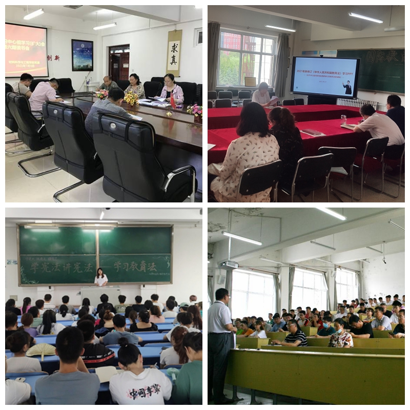 哲學(xué)與法學(xué)學(xué)院、馬克思主義學(xué)院、文學(xué)與歷史文化學(xué)院(新聞傳播學(xué)院)、材料科學(xué)與工程學(xué)院、機電工程學(xué)院、建筑與土木工程學(xué)院、國際教育學(xué)院、經(jīng)濟與管理學(xué)院、輕工與紡織學(xué)院、化學(xué)與化學(xué)工程學(xué)院、通信與電子工程學(xué)院、食品與生物工程學(xué)院等迅速行動,以習(xí)近平法治思想為指導(dǎo),通過結(jié)合黨史學(xué)習(xí)教育、大學(xué)生“學(xué)憲法講憲法”、教師培訓(xùn)、理論宣講等活動,面向師生深入開展了不同形式的系列學(xué)習(xí)宣傳活動。