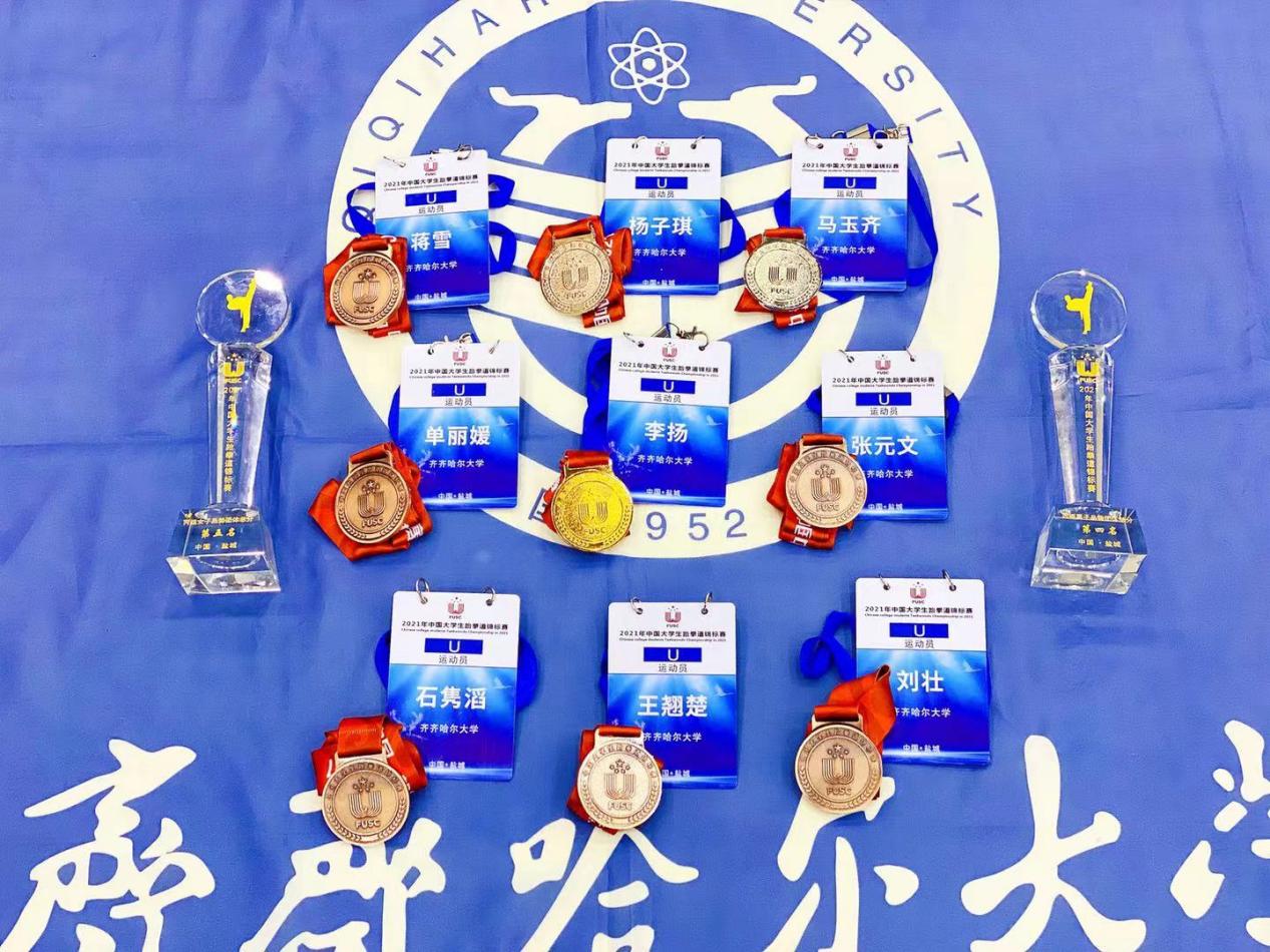 成績源自累積,獎牌凝結(jié)汗水。為備戰(zhàn)此次大賽,從4月初,齊齊哈爾大學(xué)跆拳道隊就開始了緊張的集訓(xùn)。在這個驕陽似火,燕語鶯啼的七月。修月老師帶領(lǐng)參賽同學(xué)每天進行十個多小時的刻苦訓(xùn)練,每一天的汗流浹背,每一天的筋疲力竭,每一天的忍耐堅持。終換來了每名隊員均獲獎牌的成功與喜悅。