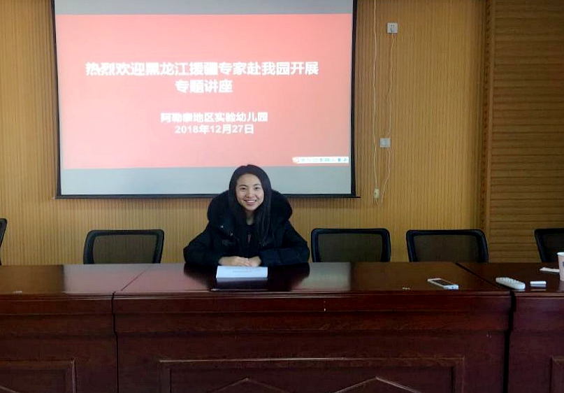 發(fā)展民族教育,幫助弱勢群體,促進教育公平,既是新時代教育中國夢的組成部分,也是實現(xiàn)中國夢宏偉目標的必然選擇。帶著這個偉大夢想,王昭于2018年8月毅然踏上了飛往新疆的航班,成為一名光榮的援疆教師,任教于阿勒泰地區(qū)師范學校,承擔2017級、2018級學前教育專業(yè)課程,學生總數(shù)達500余人,總工作量近600課時。在教學實踐中,她了解了當?shù)貙W生的學習情況,發(fā)現(xiàn)學生存在學習熱情低、參與度低、學習效率低,對學前教育專業(yè)認知度低等情況,而對于她所教授的《學前兒童教育活動設(shè)計與指導》這門專業(yè)理論性很強的課程來說,顯然傳統(tǒng)的以教師為主體的教學方法并不適用。于是她以幫助學生選擇科學的學習方法為切入點,實施“翻轉(zhuǎn)課堂”教學方法改革,更多地將多媒體現(xiàn)代教育手段應用方式教學,培養(yǎng)學生學習興趣,讓學生有參與感,充分調(diào)動學生學習的積極性和主動性,提高學生的自信心和自我滿足感。期中期末成績整體及格率由原來的20-30%增長到70-80%。她熱情歡迎老師前來聽課評課,互相取長補短。因?qū)I(yè)能力強,課堂氛圍好,學生學習情緒高漲,得到了教師們的一致好評。在教學過程中聽取多方意見,經(jīng)常去當?shù)乩蠋煹恼n堂聽課,吸取他們成功的教學經(jīng)驗,了解新疆學生的學習特點,不斷提高教學質(zhì)量。