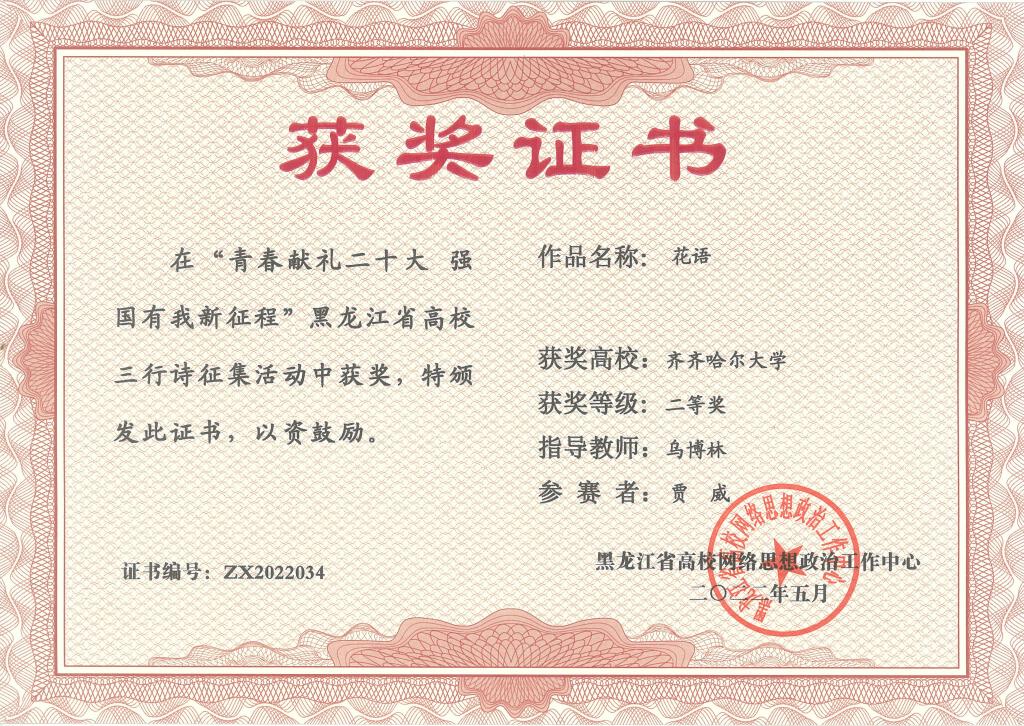 我校學(xué)生在“青春獻禮二十大 強國有我新征程” 全省高校三行詩征集活動中喜獲佳績