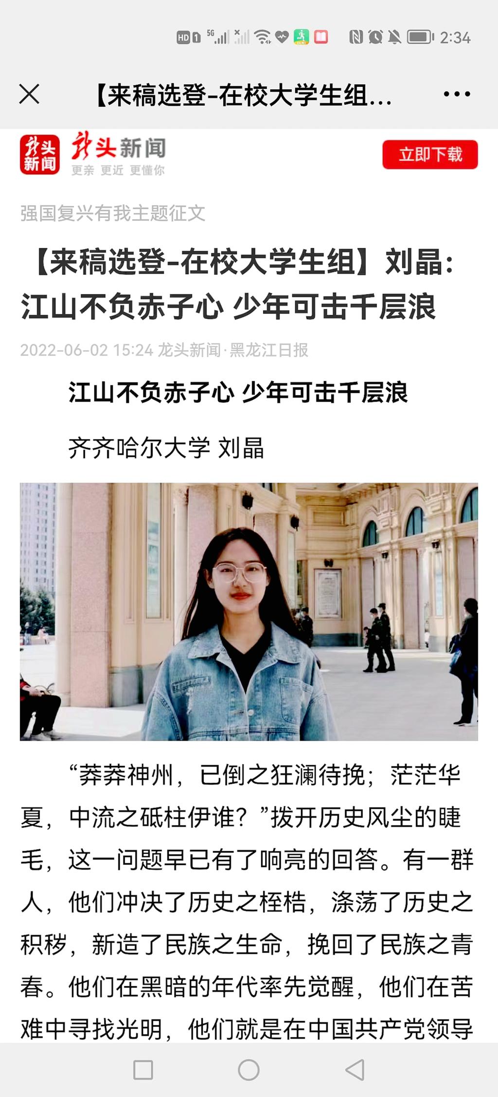 3.劉晶 《江山不負赤子心 少年可擊千層浪》 齊齊哈爾大學