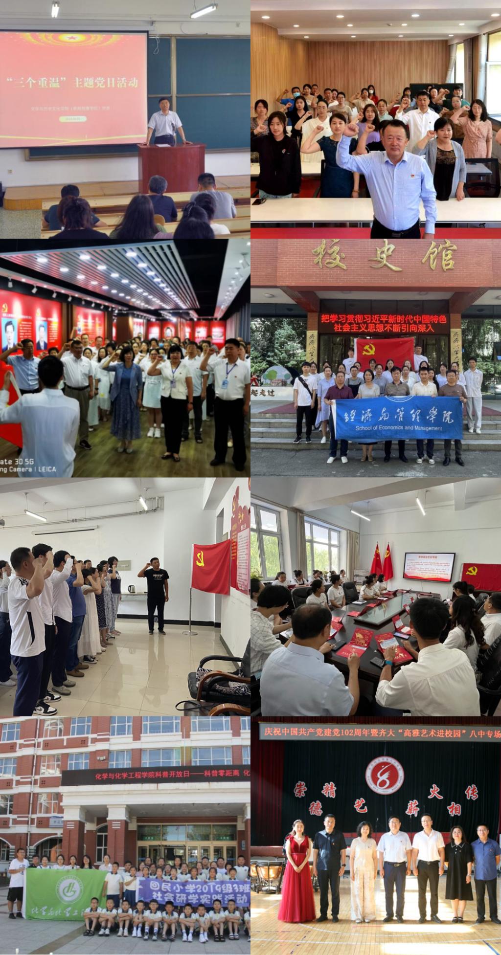 此外,化學與化學工程學院黨委以“黨建引領 科普惠民”為主題開展了“走出去 請進來”的科普活動;音樂舞蹈學院黨委開展了“高雅藝術進校園”活動等,通過結對共建、歌舞表演等形式帶領黨員重溫黨史憶崢嶸歲月,以聲傳情詮釋對黨的信仰與忠誠,以奮進姿態(tài)向黨的生日獻禮。
