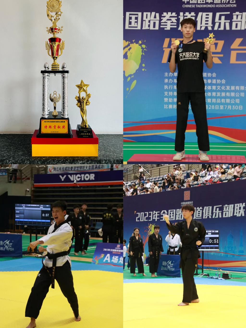 本次賽事由中國跆拳道協(xié)會主辦,黑龍江省跆拳道協(xié)會承辦,共吸引了來自北京、河北、黑龍江等省市88支代表隊1340名選手參賽。我校跆拳道隊叢蓉、于嘉增、張建、張志、潘浩、石雋滔、趙鑫、郭晟宇、張璨、王冰寒、高佳悅、李建潮12名隊員在體育學(xué)院修月老師的帶領(lǐng)下參加了比賽。在比賽過程中,我校參賽選手也積極參與了大會開幕式的表演,并贏得了與會領(lǐng)導(dǎo)與兄弟院校的一致好評,獲得了主辦方授予的特殊貢獻(xiàn)獎。