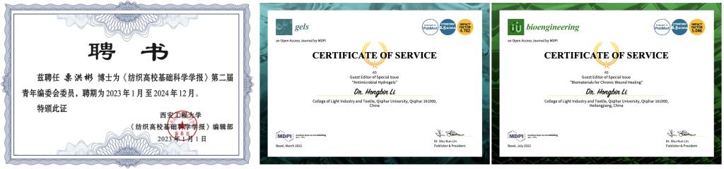栗洪彬的研究方向主要集中于紡織基生物醫(yī)用紡織品的設(shè)計(jì),依托黑龍江省工業(yè)大麻及制品質(zhì)量監(jiān)督檢驗(yàn)中心、寒區(qū)麻及制品教育工程研究中心以及“漢麻精深加工及檢測(cè)關(guān)鍵技術(shù)”省優(yōu)勢(shì)特色學(xué)科等平臺(tái),取得了豐碩成果。作為哈佛大學(xué)哈佛醫(yī)學(xué)院的聯(lián)培生,栗洪彬發(fā)現(xiàn),頂級(jí)學(xué)府的魅力不僅在于在學(xué)生心中厚植追求卓越的理念,也在于給有準(zhǔn)備的人提供更多的機(jī)會(huì),哈佛的經(jīng)歷給栗洪彬的科研能力帶來了質(zhì)的提升,開發(fā)的紙基器官芯片實(shí)現(xiàn)了多孔血管化腫瘤模型的構(gòu)建并用于抗癌藥物的篩選,為構(gòu)建低成本的組織模型提供了一個(gè)新平臺(tái)。2017年以來,他先后承擔(dān)了黑龍江省自然科學(xué)基金、黑龍江省高等學(xué)校青年創(chuàng)新人才項(xiàng)目等10余項(xiàng),近五年以第一作者/通訊作者在Aggregate、AdvancedFiberMaterials、ChemicalEngineeringJournal、NanoLetters、Biofabrication等國(guó)際高水平期刊發(fā)表SCI論文24篇(ESI高被引1篇,Cell子刊1篇,中國(guó)科學(xué)院一區(qū)10篇,IF>10的6篇),授權(quán)中國(guó)發(fā)明專利2項(xiàng),主編教材1部、Springer出版社英文專著1章。他還被西安工程大學(xué)《紡織高?;A(chǔ)科學(xué)學(xué)報(bào)》聘為青年編委,被國(guó)際期刊Gels和Bioengineering聘為客座編輯。此外,栗洪彬與哈佛大學(xué)、新加坡國(guó)立大學(xué)、哈爾濱工業(yè)大學(xué)、上海交通大學(xué)、同濟(jì)大學(xué)、深圳大學(xué)和東北農(nóng)業(yè)大學(xué)保持著良好的合作關(guān)系,指導(dǎo)的學(xué)生中兩人分別于2022年和2023年赴同濟(jì)大學(xué)和東北農(nóng)業(yè)大學(xué)攻讀博士學(xué)位。