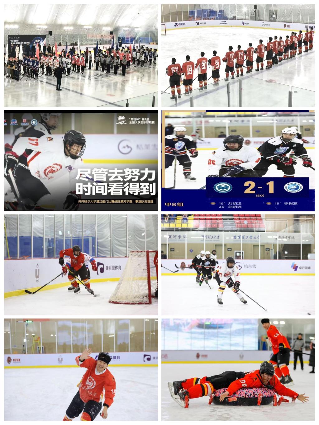 11月21日至27日,“犀旺杯”第4屆全國(guó)大學(xué)生冰球聯(lián)賽(CUHL)常規(guī)賽在張家口市康保縣全民冰雪體育綜合體舉辦。我校冰球隊(duì)第二次征戰(zhàn)全國(guó)大學(xué)生冰球聯(lián)賽甲B組的比賽。