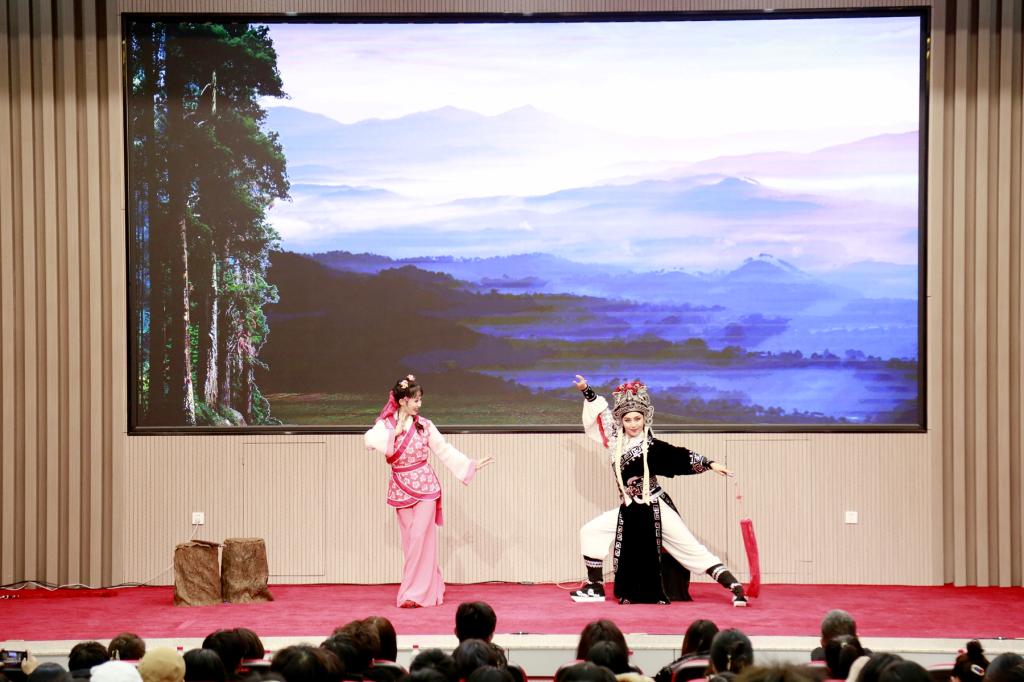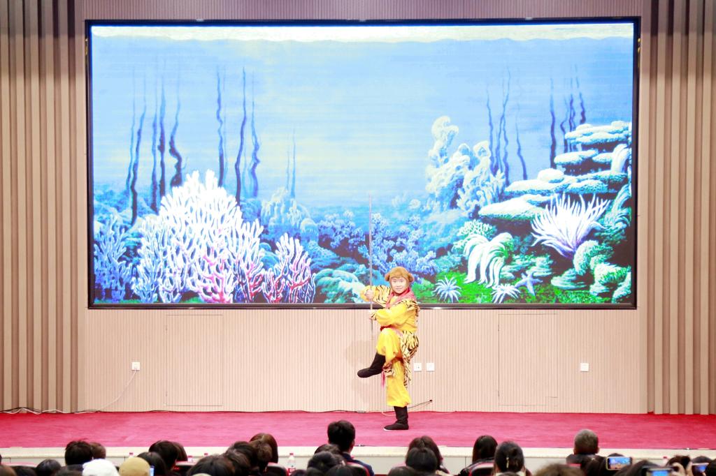 本次活動以專題講座的形式,將戲曲理論講解、經(jīng)典片段展示和演員觀眾互動融合在一起。劇團國家一級演員—著名龍江劇表演藝術(shù)家欒蘭從龍江劇起源、龍江劇人物、龍江劇功課、龍江劇片段等角度為現(xiàn)場師生普及了龍江劇知識。省龍江劇藝術(shù)中心的演員們表演了原創(chuàng)大型龍江劇《木蘭傳奇》之《紅劍穗》《孫猴借寶》《宗寶戲妻》等品牌劇目的經(jīng)典片斷,向師生們展示了龍江劇的獨特魅力。