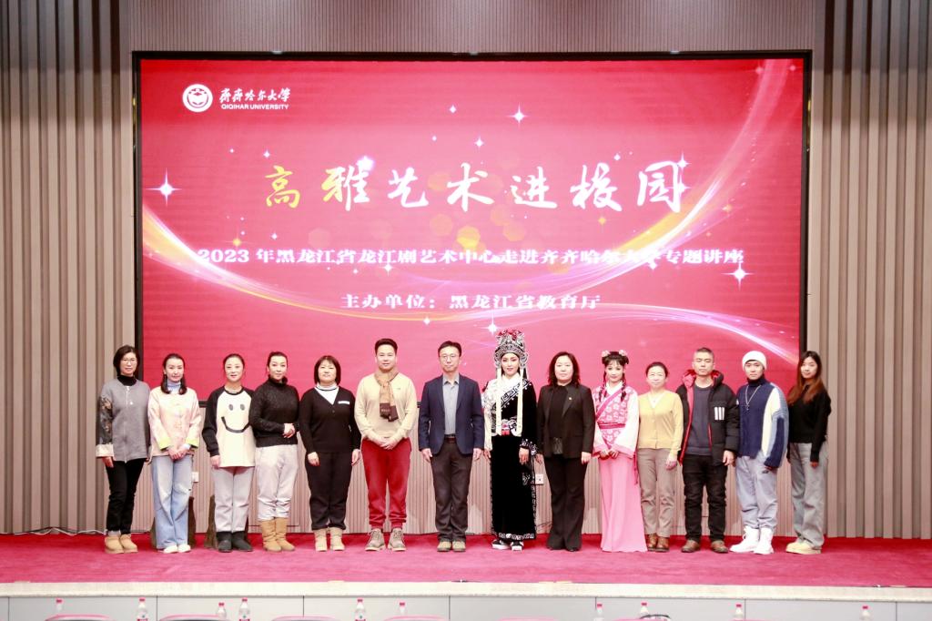 “舞臺方寸懸明鏡,優(yōu)孟衣冠啟后人。”12月13日下午,由黑龍江省教育廳、黑龍江省文化和旅游廳、黑龍江省財政廳共同主辦的2023年“高雅藝術(shù)進校園”黑龍江省龍江劇藝術(shù)中心走進齊齊哈爾大學(xué)專題講座在日新大廈四樓報告廳舉行。學(xué)校宣傳部、團委、學(xué)生工作部(學(xué)生處)等部門負(fù)責(zé)人及師生代表400余人共同參加了活動。