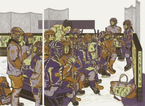 每五年舉辦一次的全國美術(shù)作品展覽作為我國美術(shù)界最權(quán)威的展覽,代表了國家美術(shù)創(chuàng)作的最高水平,是美術(shù)工作者展示作品風貌最重要的平臺,本屆全國美術(shù)作品展更是檢閱美術(shù)家們的創(chuàng)作在新時代呈現(xiàn)新面貌的重要契機。宋陽的版畫作品《孜孜以求·燃冰少年隊》和趙帥的版畫作品《冰舞》在題材上均選擇了具有鮮明東北地域特色的冰雪體育,體現(xiàn)了繪畫創(chuàng)作與冰雪文化的高度融合,也蘊含著創(chuàng)作者對新時代體育精神的理解和認知。