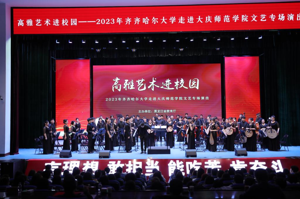為深入貫徹《教育部關(guān)于全面實(shí)施學(xué)校美育浸潤(rùn)行動(dòng)的通知》(教體藝〔2023〕5號(hào))及《黑龍江省全面實(shí)施學(xué)校美育浸潤(rùn)行動(dòng)工作方案》(黑教發(fā)〔2024〕22號(hào))的決策部署,打造特色美育品牌、繁榮校園文化、豐富第二課堂、促進(jìn)學(xué)校育人成效,在黑龍江省教育廳舉辦的首批優(yōu)秀學(xué)生藝術(shù)團(tuán)遴選活動(dòng)中,我校舞蹈團(tuán)和民樂(lè)團(tuán)兩個(gè)團(tuán)隊(duì)成功入選全省首批優(yōu)秀學(xué)生藝術(shù)團(tuán)。(全省共入選合唱團(tuán)、舞蹈團(tuán)、學(xué)生樂(lè)團(tuán)、戲劇戲曲四類20個(gè)團(tuán)隊(duì))