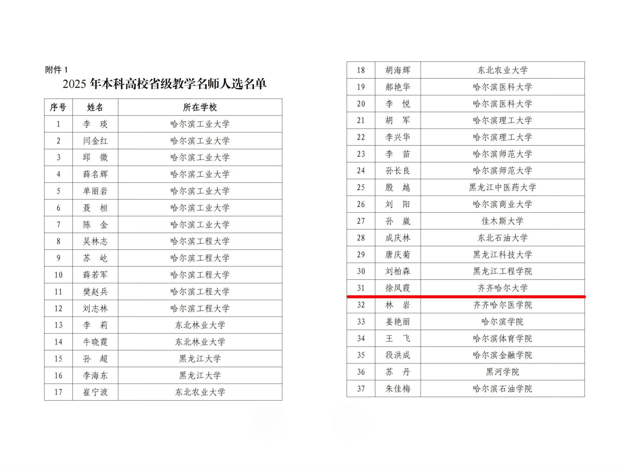近期,黑龍江省教育廳發(fā)布了《關(guān)于公布2025 年黑龍江省級教學(xué)名師的通知》(黑教發(fā)〔2025〕31號),我校教師徐鳳霞教授獲評2025年黑龍江省本科高校省級教學(xué)名師。本次“省級教學(xué)名師”榮譽(yù)的獲得,是我校在師資隊(duì)伍建設(shè)、教育教學(xué)水平建設(shè)方面取得的又一重要成果。