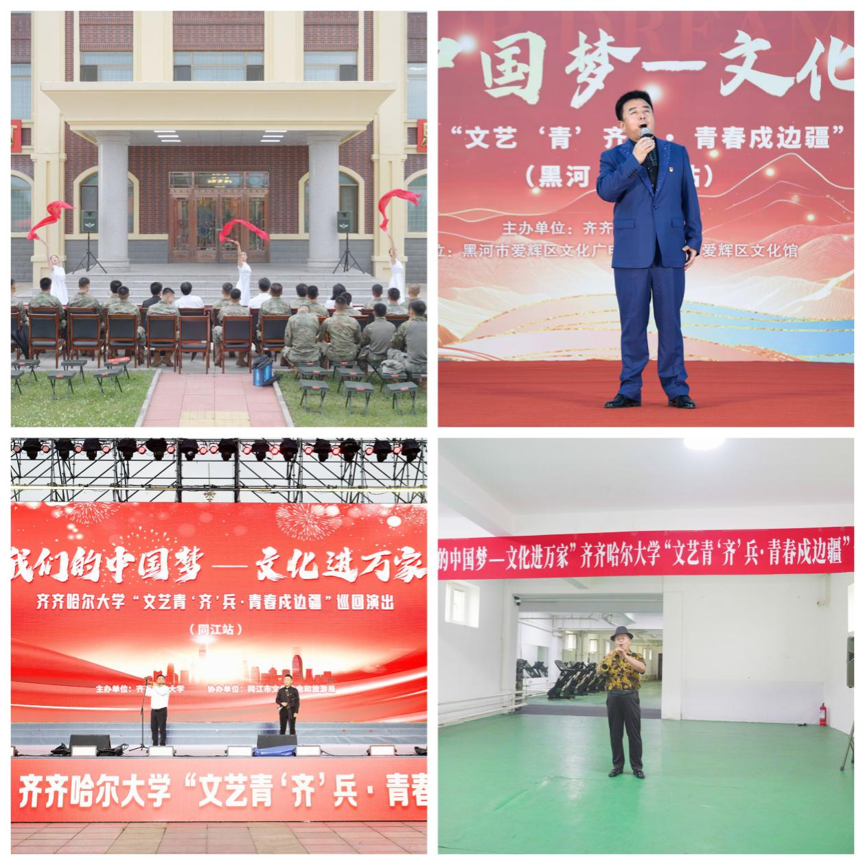 為深入貫徹落實(shí)黨的二十大關(guān)于推進(jìn)文化自信自強(qiáng)的戰(zhàn)略部署,積極響應(yīng)中宣部“我們的中國夢——文化進(jìn)萬家”活動(dòng)號(hào)召,八一建軍節(jié)前夕,學(xué)校黨委宣傳部、團(tuán)委、音樂與舞蹈學(xué)院共同籌劃,選拔部分黨員師生和業(yè)務(wù)骨干,組建齊齊哈爾大學(xué)文藝青“齊”兵小分隊(duì),懷揣著對黨的忠誠,開啟了文化戍邊暑期“三下鄉(xiāng)”實(shí)踐之旅,在祖國北疆漠河到撫遠(yuǎn)4300余公里的邊境線上踏歌而行,用藝術(shù)傳遞黨的聲音,用文化凝聚民族共識(shí),用真情歌頌軍民情誼,譜寫了一曲新時(shí)代文化戍邊的青春贊歌。