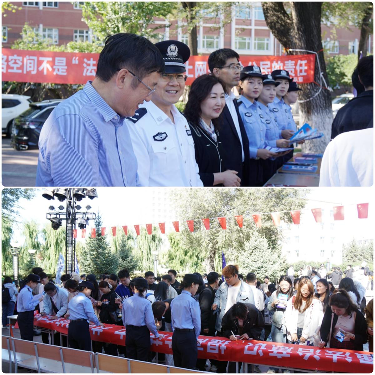 9月18日上午,學(xué)校黨委宣傳部、武裝部(保衛(wèi)處)、學(xué)生工作部(學(xué)生處)聯(lián)合齊齊哈爾市公安局網(wǎng)安支隊(duì),在三致廣場舉辦“數(shù)智互聯(lián)、安全共享”網(wǎng)絡(luò)安全與反詐騙宣傳活動(dòng),校領(lǐng)導(dǎo)、職能部門負(fù)責(zé)人和廣大師生共同參與。活動(dòng)通過“線上+線下”模式,設(shè)立宣傳咨詢臺、圖文展板,LED屏循環(huán)播放網(wǎng)絡(luò)安全教育視頻。民警結(jié)合高校多發(fā)電信詐騙案例,發(fā)放宣傳手冊,指導(dǎo)師生下載注冊“國家反詐中心”APP并開啟預(yù)警功能。師生踴躍在橫幅上簽名,承諾共建清朗網(wǎng)絡(luò)空間。